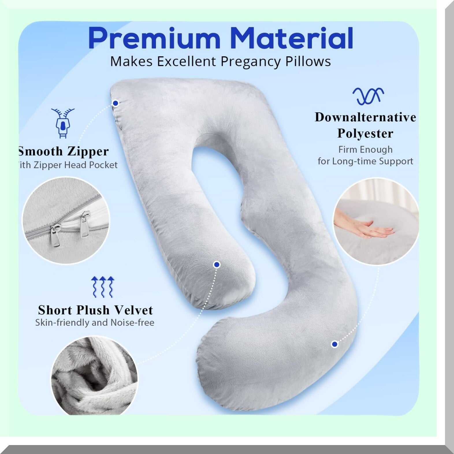 Ultimate Comfort Pregnancy Pillow - U Shaped Body Pillow for Side Sleepers, Maternity Must-Have for Pregnant Women, 59'' Full Support Pillow with Removable Velvet Cover in Grey