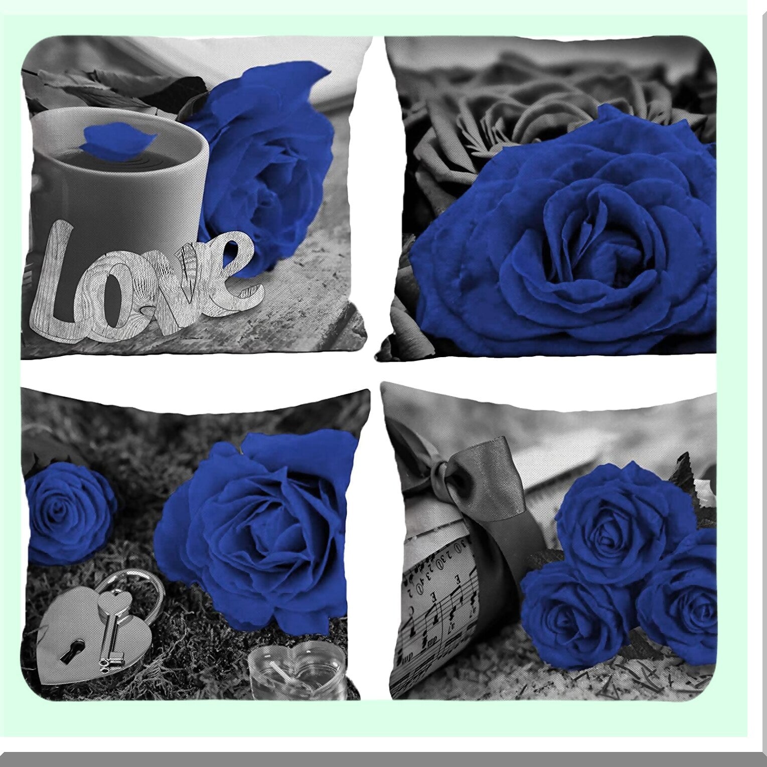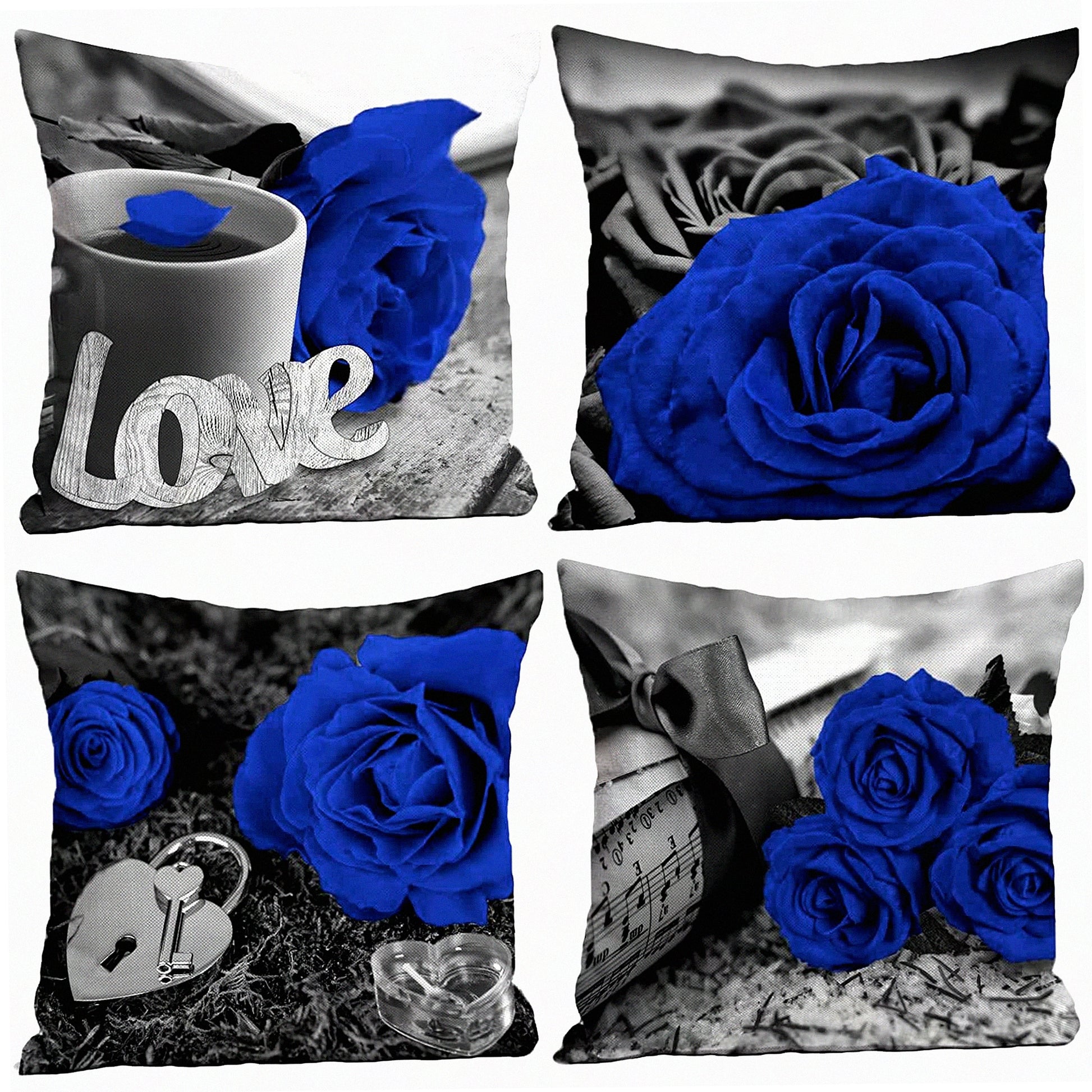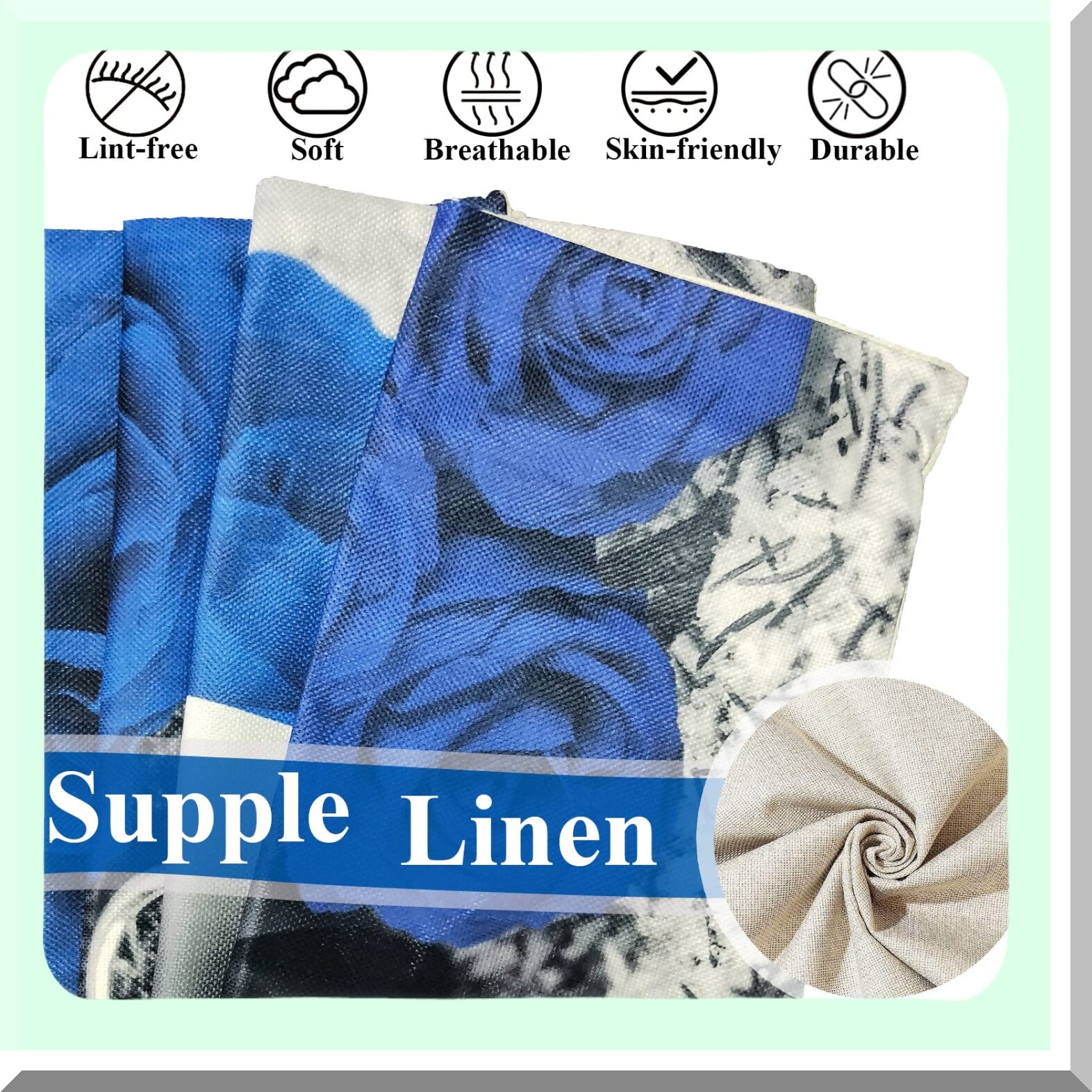 Blue Blossom Linen Pillow Covers - Set of 4 | Decorative Throw Pillow Cases for Couch, Bed, Living Room | Farmhouse Style 18x18 | Spring Summer Home Decor