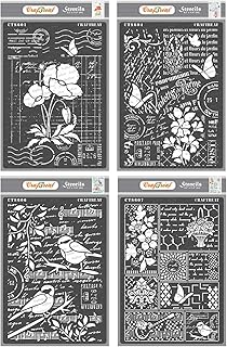 This set includes four reusable stencils designed for painting on wood, canvas, and fabric. The patterns feature ledger designs, poppies, flowers, bird songs, and various decorative bits and pieces. Each stencil measures A4 size (8.3 x 11.7 inches), making them suitable for a variety of art and craft projects. They are made from durable material that can be used multiple times, allowing for creative decorating on different surfaces. These stencils are ideal for DIY enthusiasts looking to add detailed designs to their artwork or craft projects.