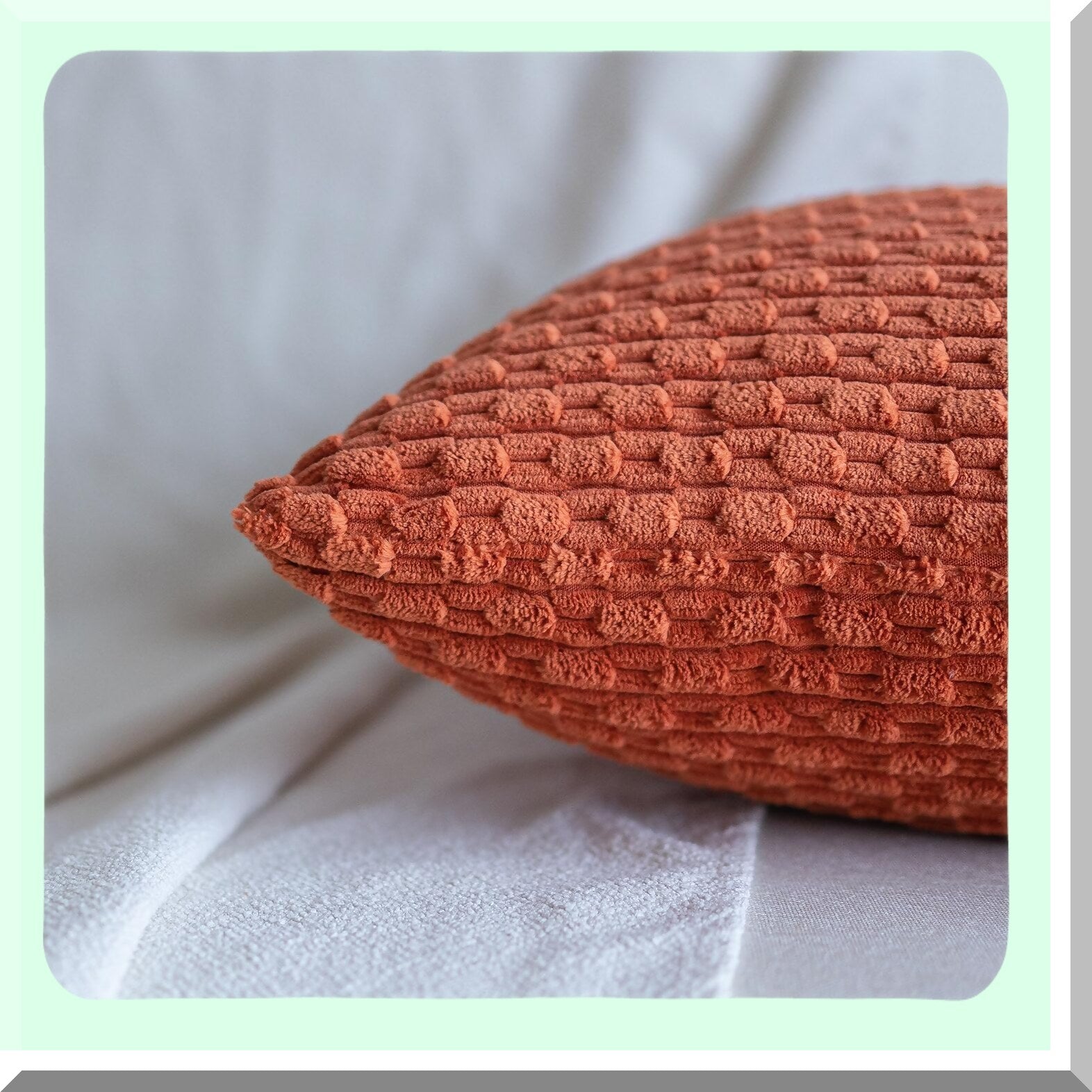 CozyStripe Corduroy Pillow Covers - Set of 2 Soft Boho Farmhouse Decor for Sofa, Couch, Bed - 18x18 Inch Rustic Square Throw Pillow Cases for Living Room