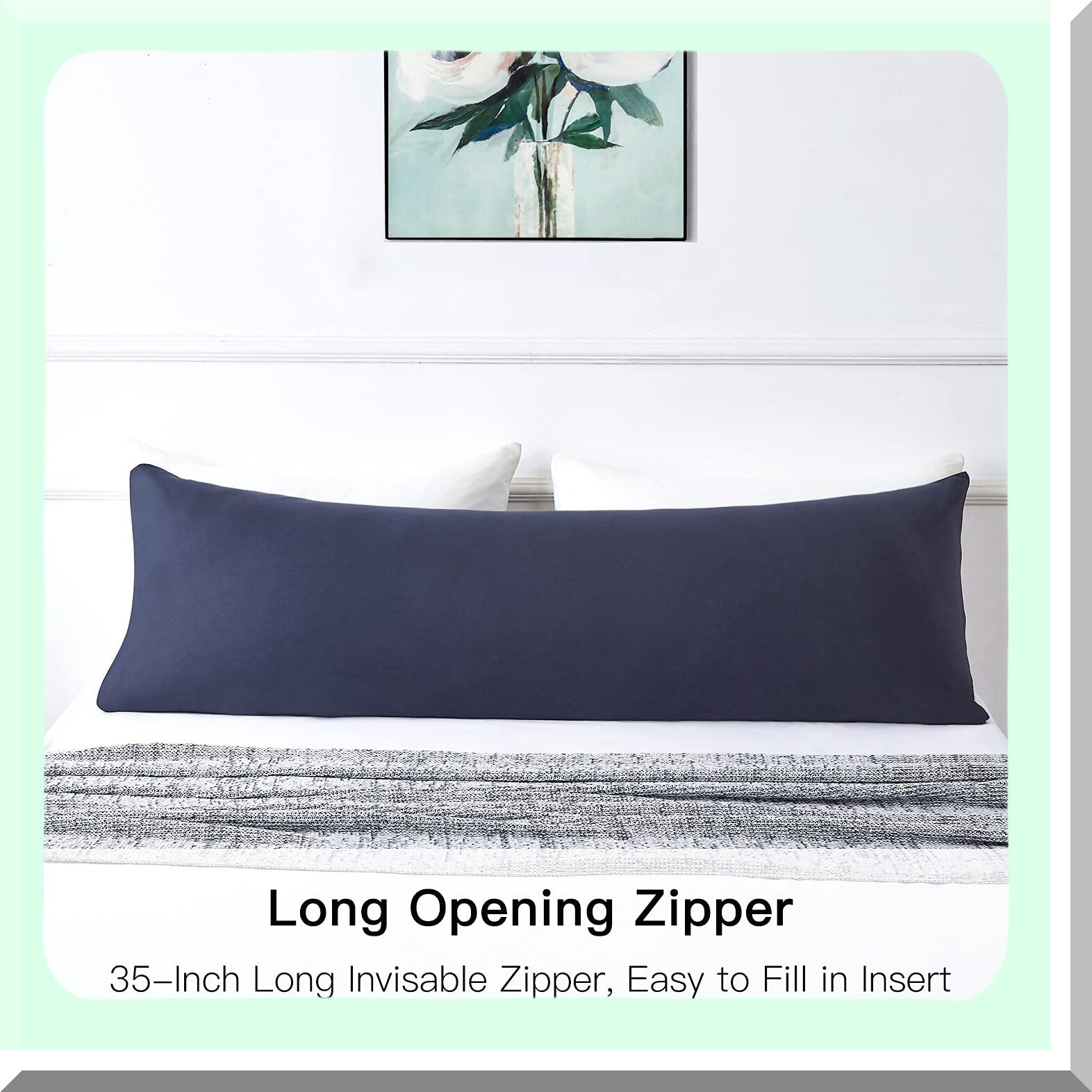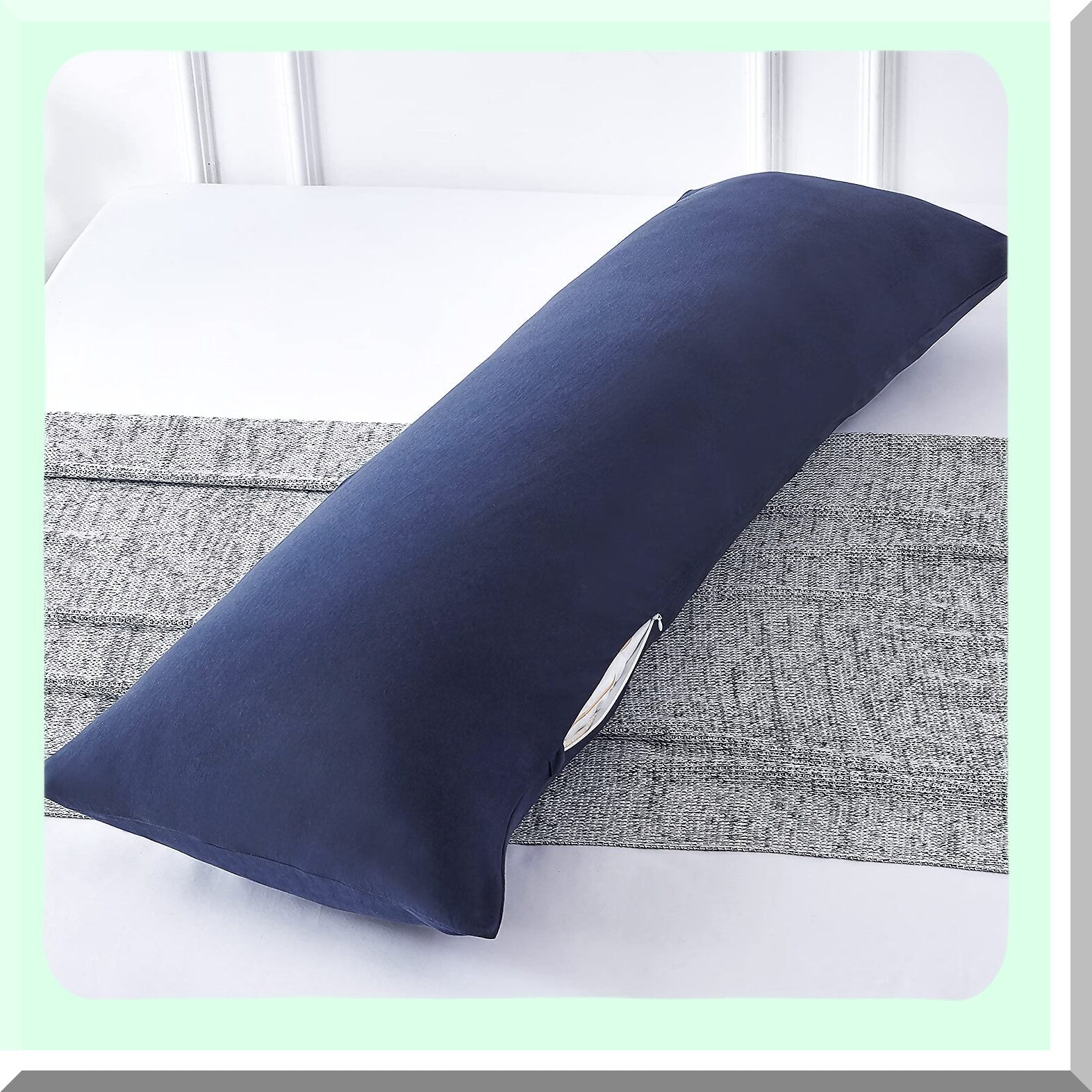 Navy Blue Cotton Jersey Body Pillow Cover - Hypoallergenic Zippered Pillowcase for 20x54 Inch Body Pillows - Soft and Long-lasting