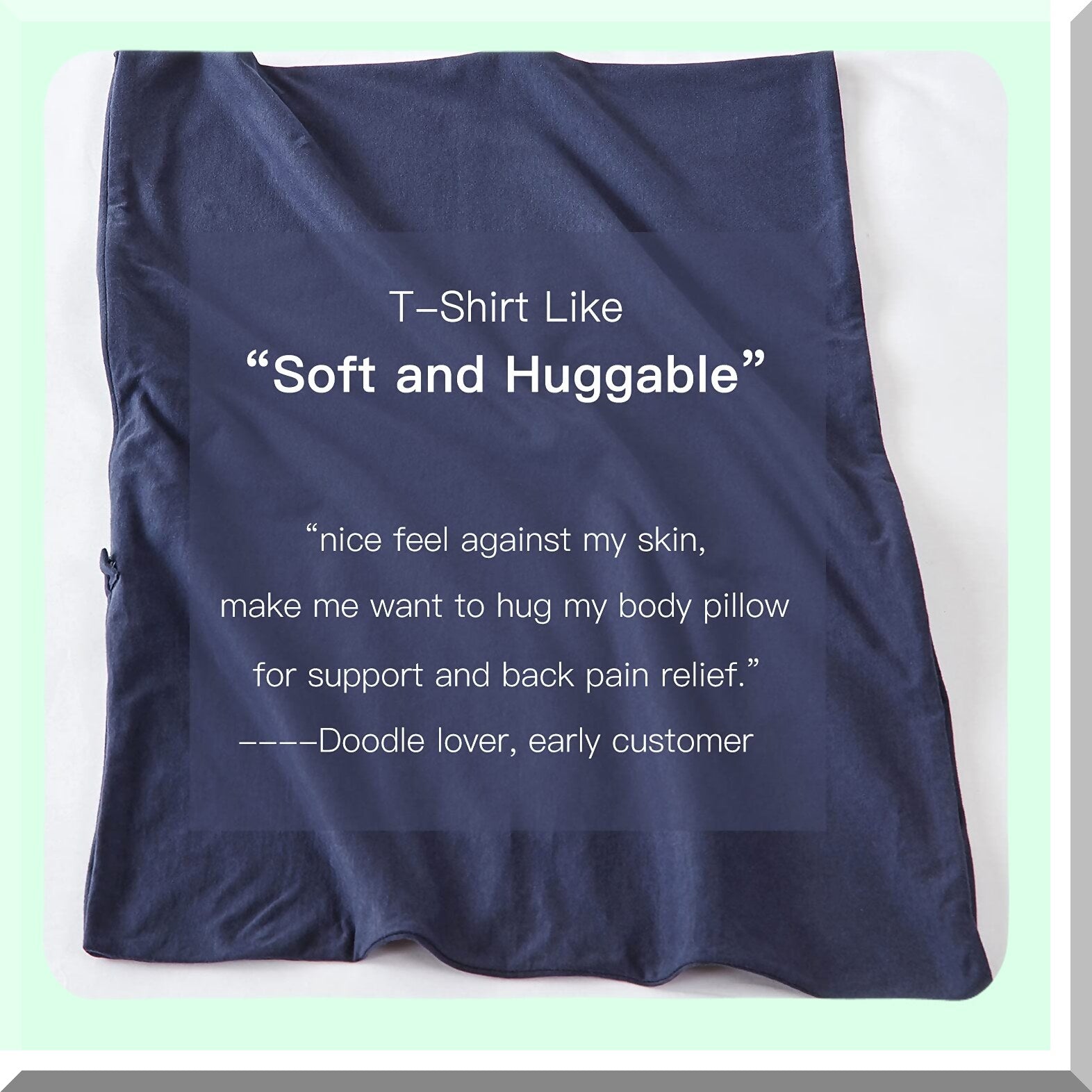 The navy blue body pillow cover is made of jersey cotton, providing a soft and comfortable feel similar to a T-shirt. This material is durable and easy to clean, making it a practical choice for everyday use. The cover's softness enhances comfort while sleeping or lounging, and its navy blue color adds a stylish touch to any room. Overall, the cover offers a combination of comfort, durability, and style for users looking to enhance their relaxation experience.
