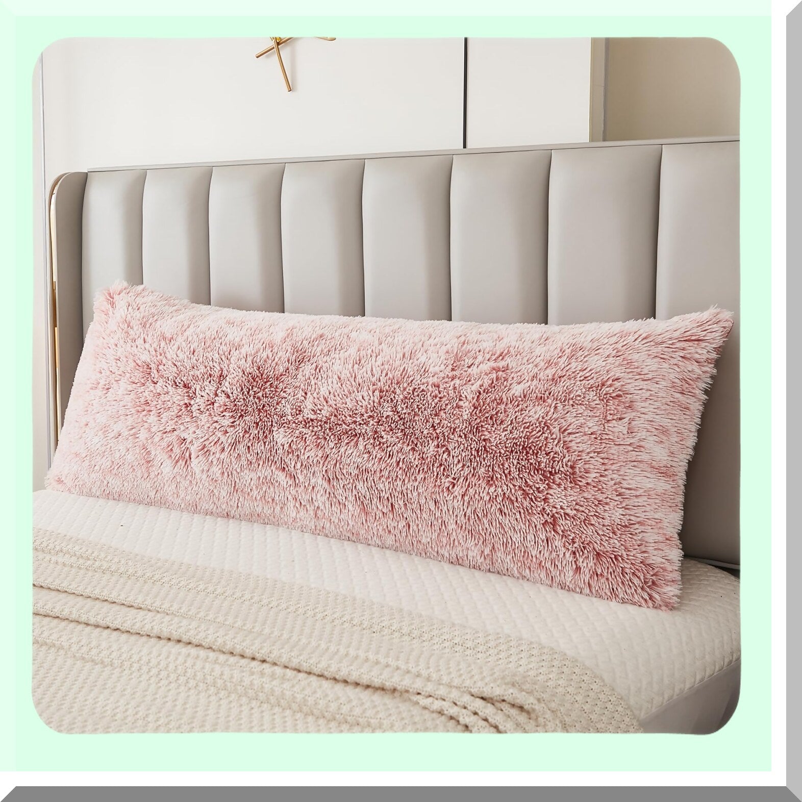 Luxury Shaggy Plush Ombre Pink Body Pillowcase - Ultra Soft Cozy Zipper Closure Cover for Fluffy Decorative Body Pillow 21 x 54 Inches