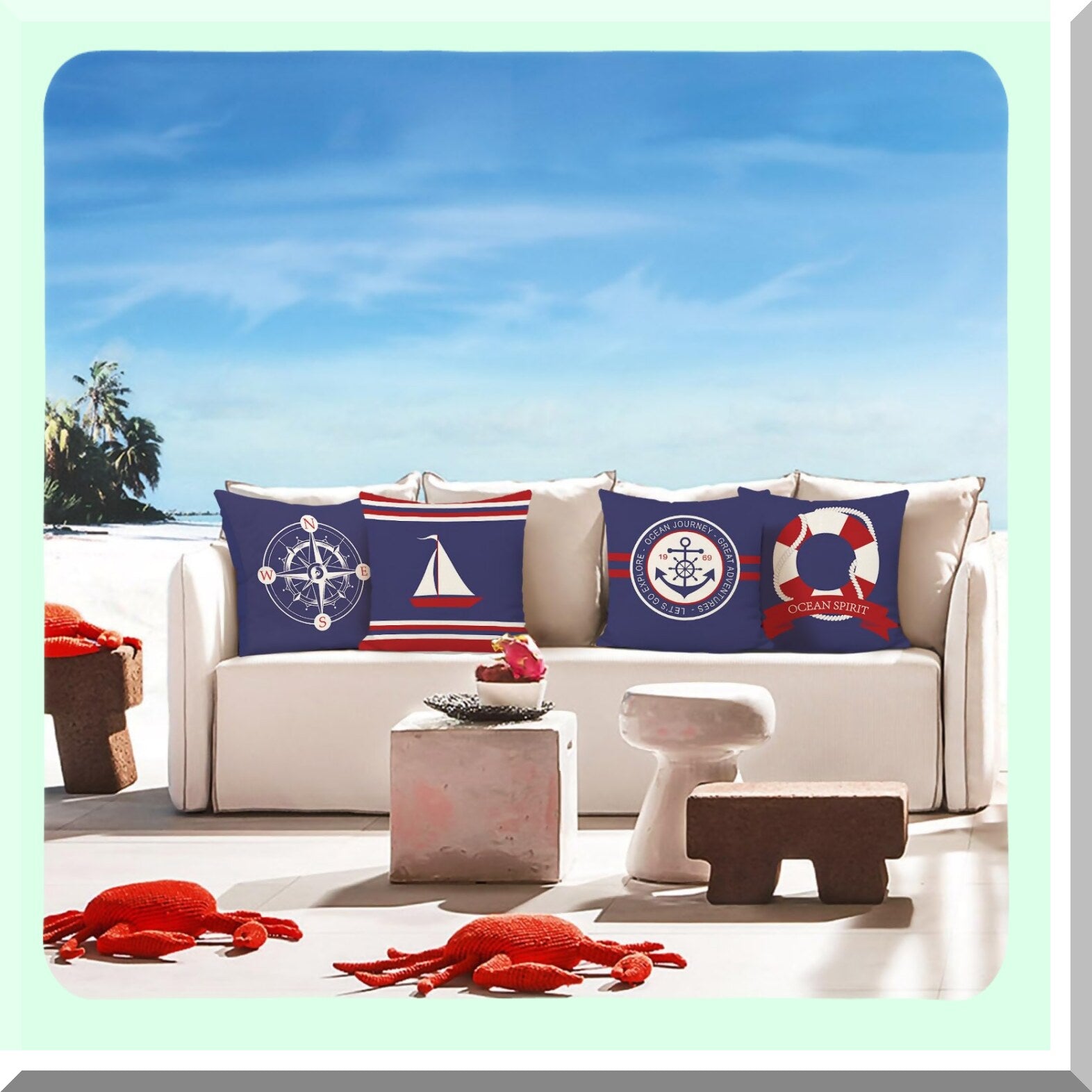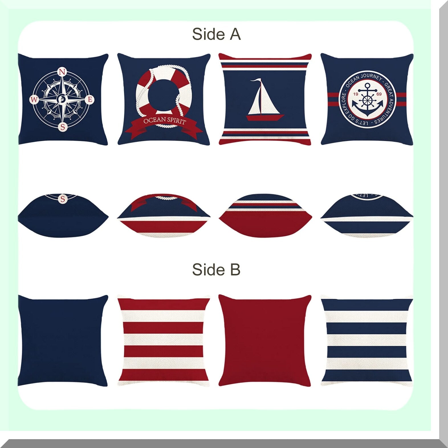 Navy Blue Anchor Nautical Sailboat Pillow Covers Set - Decorative Throw Cases 18x18 Inch Cotton Linen Sofa Couch Bed Home Decor - Pack of 4