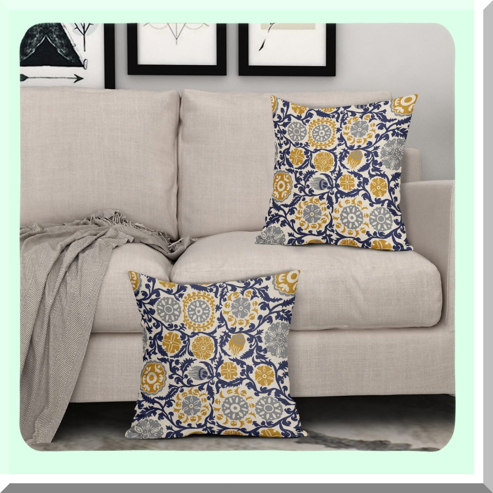 The high-quality linen-blend material of the yellow and blue throw pillow covers offers practical benefits such as durability, easy maintenance, and a luxurious feel. The material is long-lasting and resistant to wear and tear, making the pillow covers suitable for everyday use. Additionally, the linen-blend fabric is easy to clean and maintain, requiring minimal effort to keep them looking fresh and new. The luxurious feel of the material adds a touch of elegance to any room, enhancing the overall aesthetic appeal. Overall, these pillow covers provide users with a durable, low-maintenance, and stylish option for decorating their living spaces.
