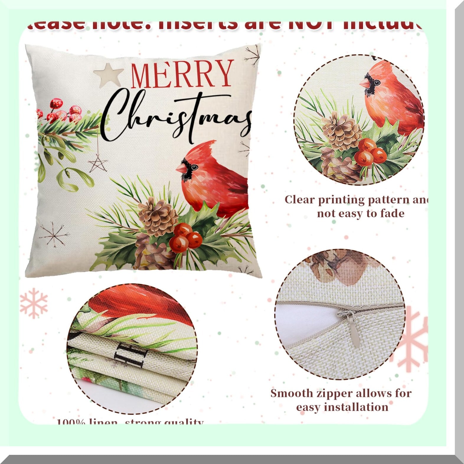 Winter Wonderland Pillow Cover Set - 18 Inch Snowflake & Moose Decorative Linen Throw Pillow Covers for Bedroom & Living Room Holiday Decor - Pack of 4