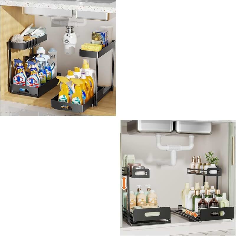 The Delamu Under Sink Organizer features a two-tier pull-out design that maximizes storage space beneath the sink. Made from durable materials, it provides a sturdy solution for organizing cleaning supplies, toiletries, and other household items. The adjustable shelves allow for customization to fit various items and cabinet sizes. Its smooth sliding mechanism ensures easy access to stored items, while the compact design helps utilize limited under-sink space efficiently. The organizer is easy to install and maintain, making it a practical addition to any kitchen or bathroom. Its versatile design helps keep clutter at bay and maintains a tidy, organized environment. Suitable for various cabinet depths and widths, it offers a convenient way to improve storage organization and accessibility. The sturdy construction and thoughtful design make it a reliable choice for enhancing under-sink storage functionality.