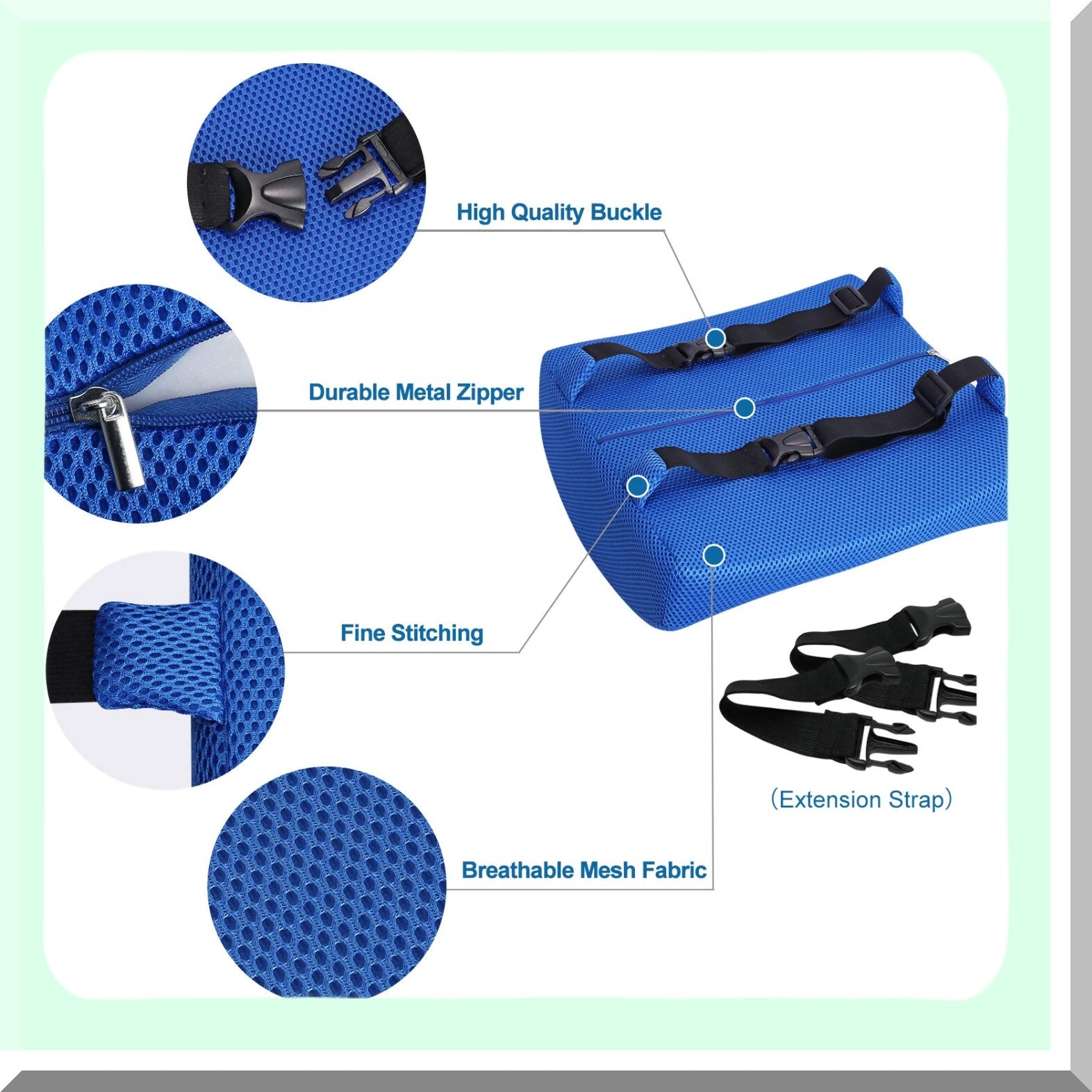 MemoryFoam Mesh Lumbar Support Pillow - Back Pain Relief Cushion for Chair & Car - Office Chair Back Support - Blue Color - Ergonomic Design