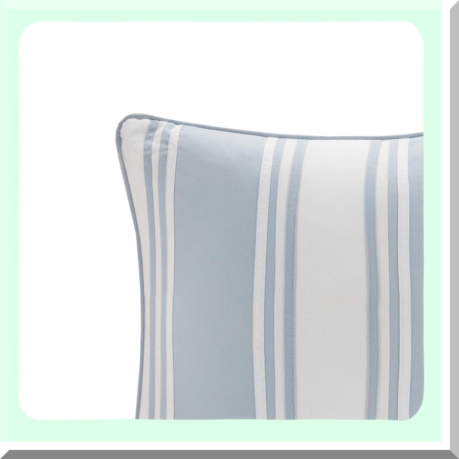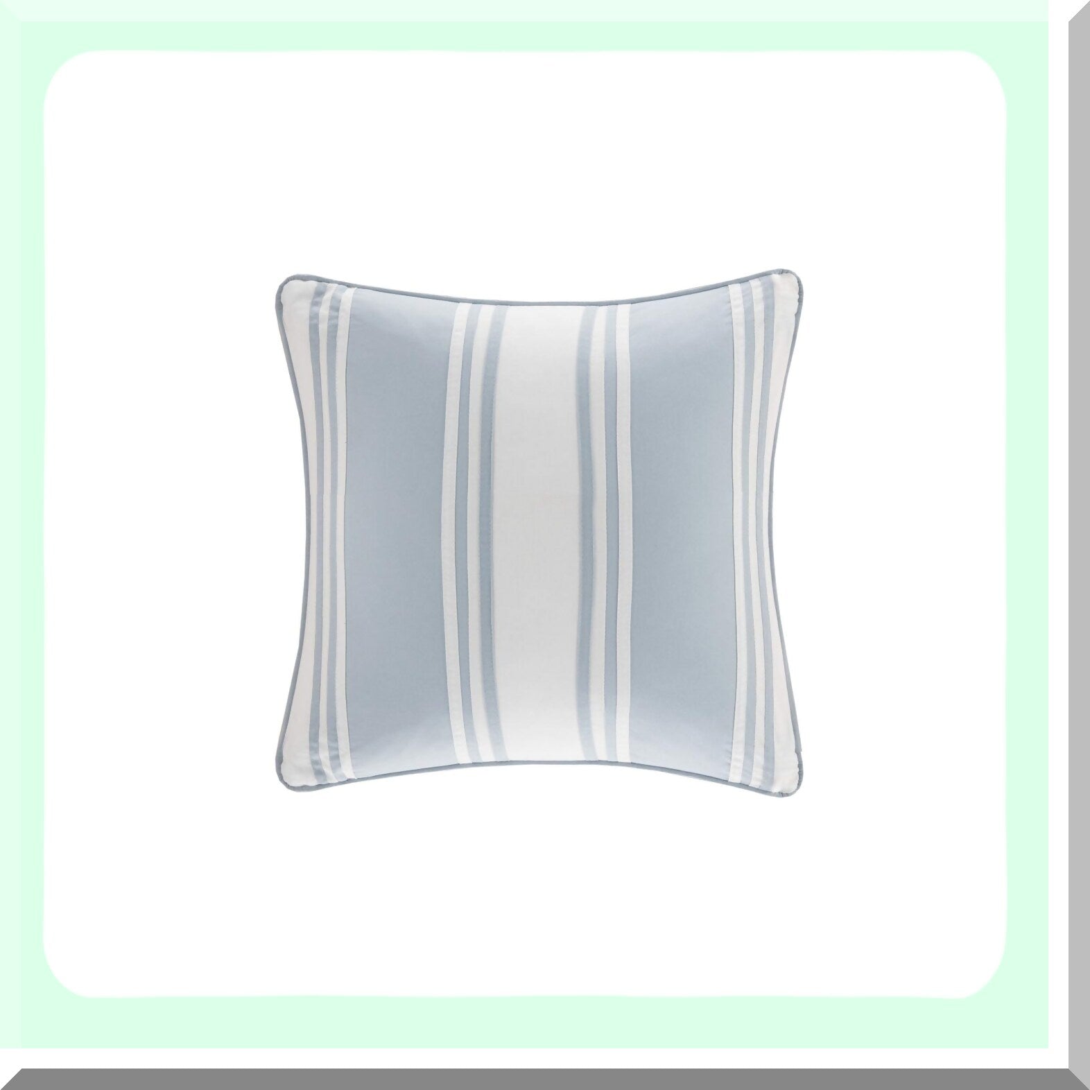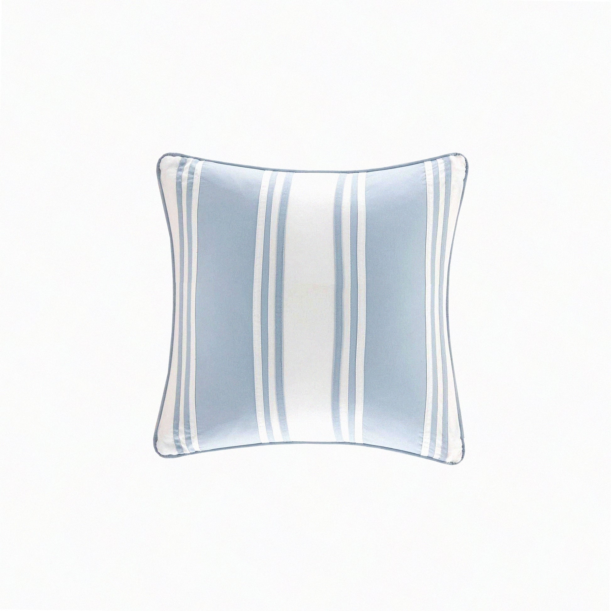 Coastal Striped Crystal Cotton Throw Pillow - Blue & White Square Decorative Cushion - Beach Pieced 18X18 - Strapping Design