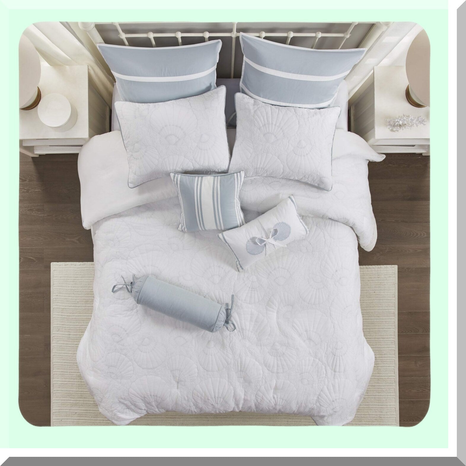 Enhance your bedroom decor with the Crystal Beach Pieced Square Pillow.