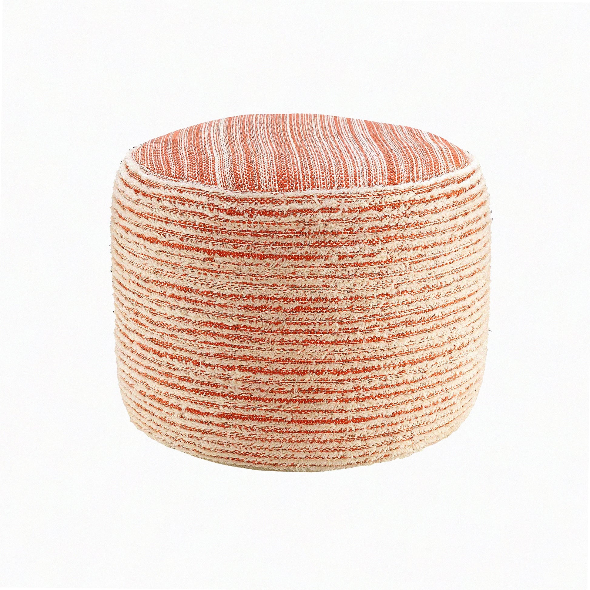 Tropical Coral Distressed Pouf - Textured Ottoman Seat for Living Room, 18x18x14 Inches - Coastal Decor Footstool with White Accents