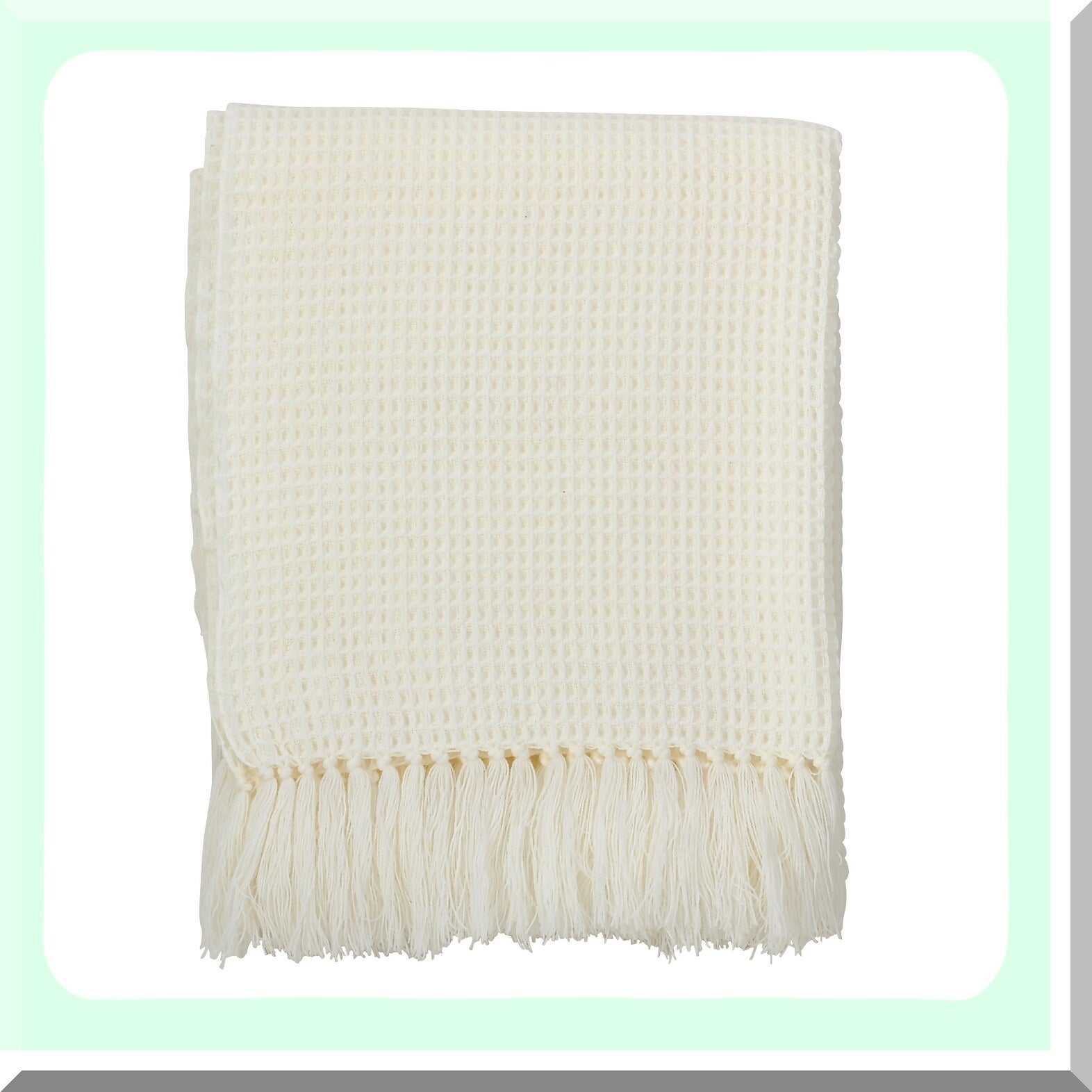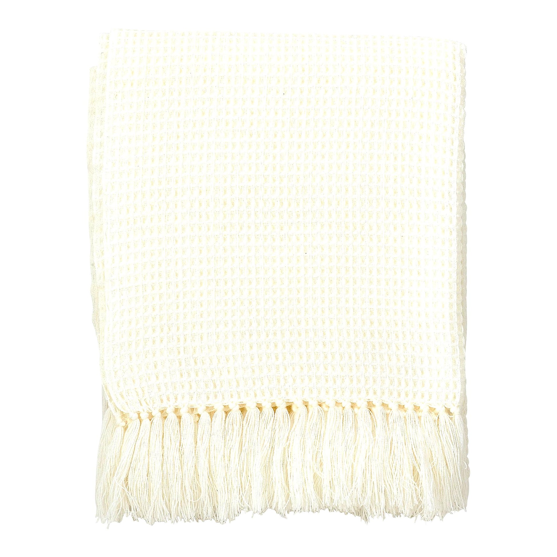CozyWaffle Ivory Throw Blanket - 50"x60" Luxurious Waffle Weave Design with Elegant Trim