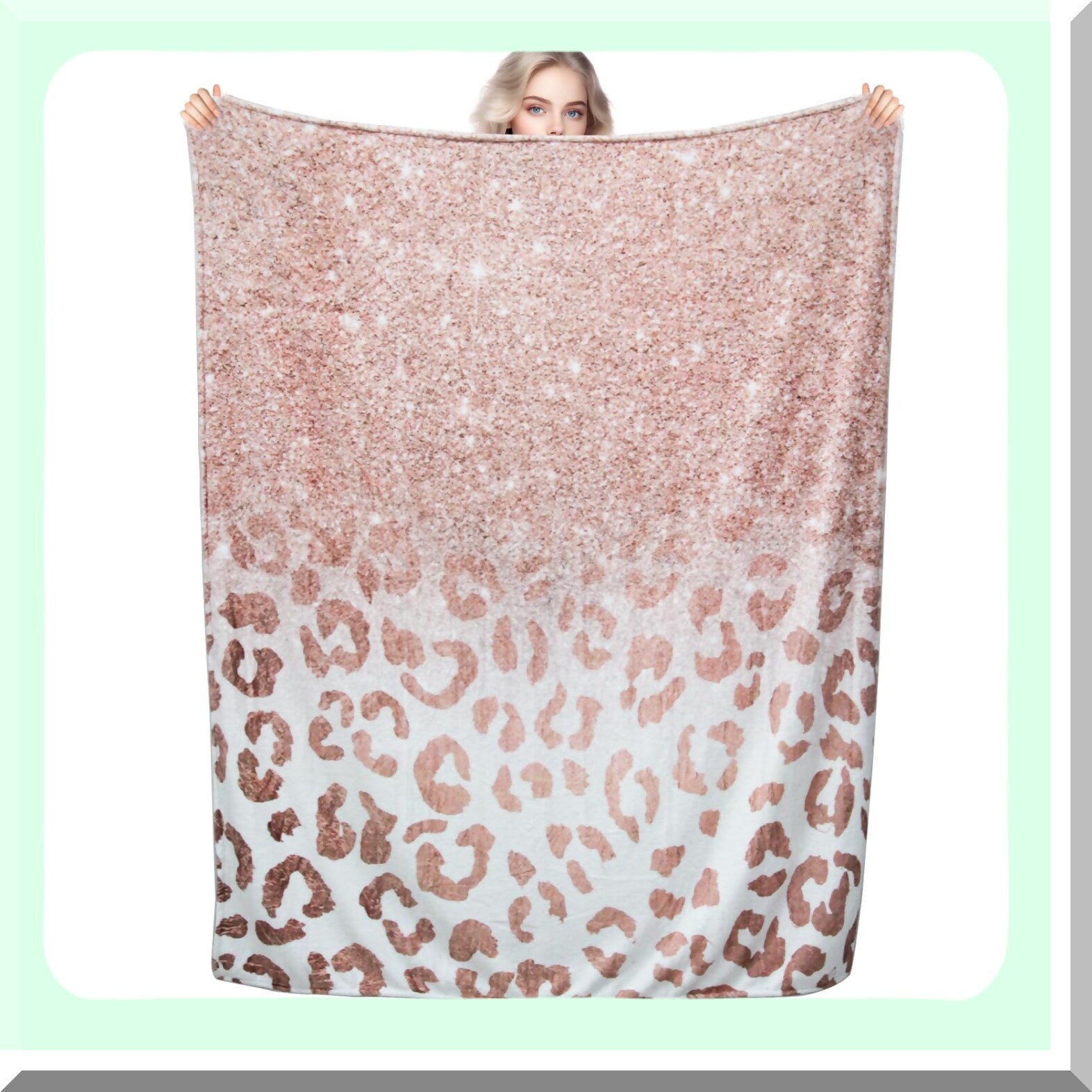 Rose Gold Leopard Glitter Fleece Throw - Soft & Cozy Blanket for Bedding, Office, Sofa, Chair Decor - 50x60 inches