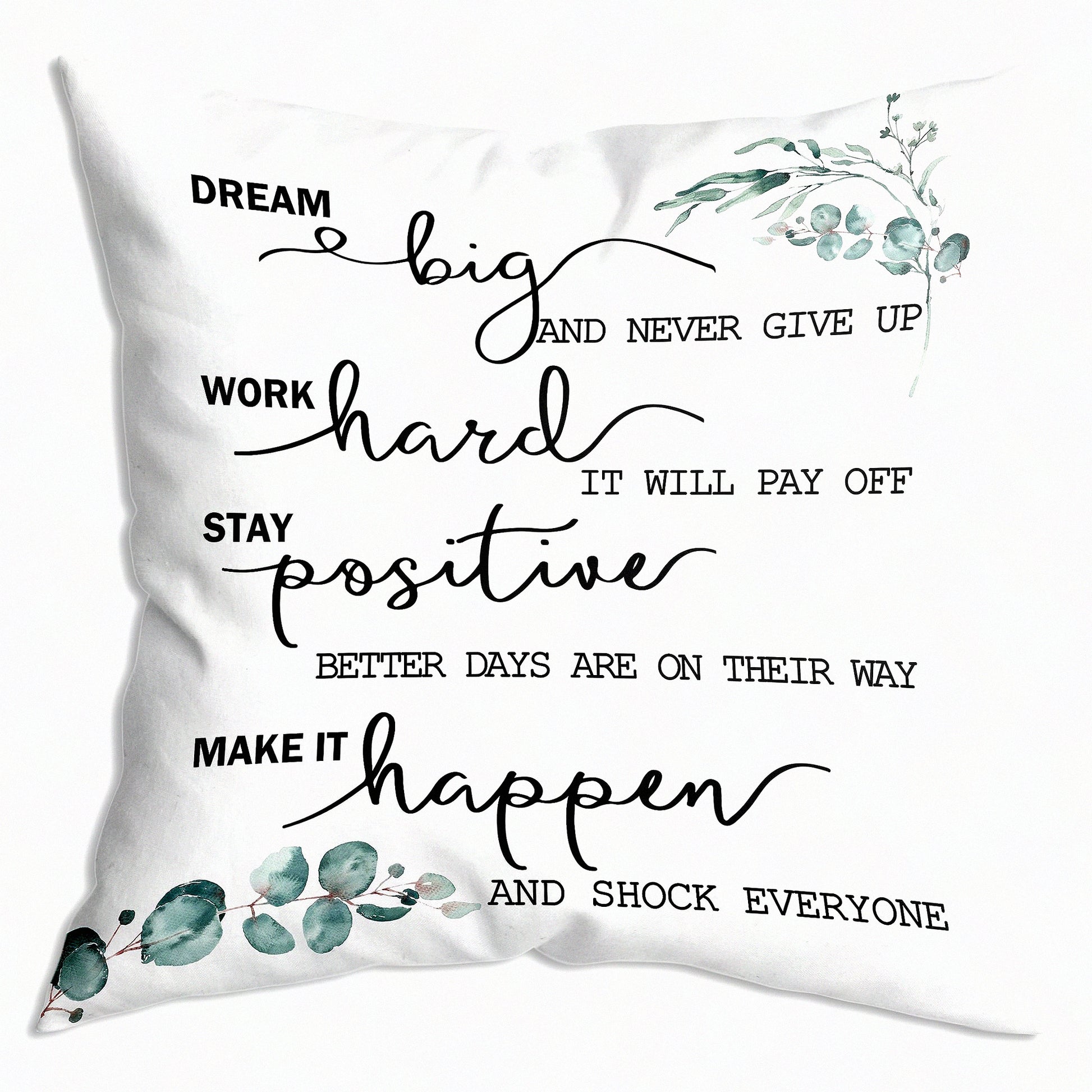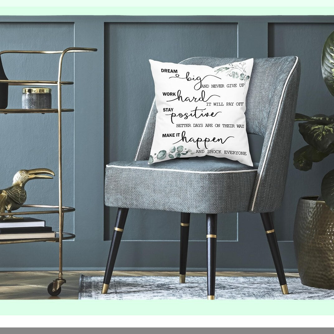 PositiveVibes Pillowcase - Inspirational Decor for Bedroom, Living Room, Office, Classroom - 18x18 inch Black and White Daily Affirmations - Women Men Kids