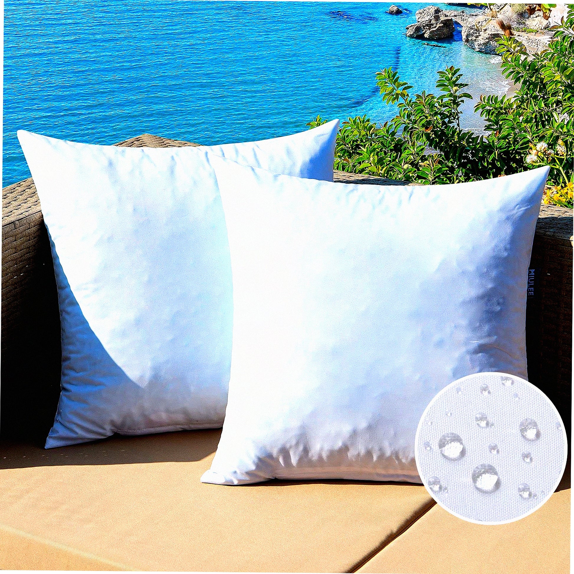 CoolFoam Outdoor Pillow Inserts - Set of 2 Premium Water Resistant Throw Pillows with Shredded Memory Foam Cooling Filler. Perfect Square Decorative Couch Stuffer Sham for Patio Furniture.