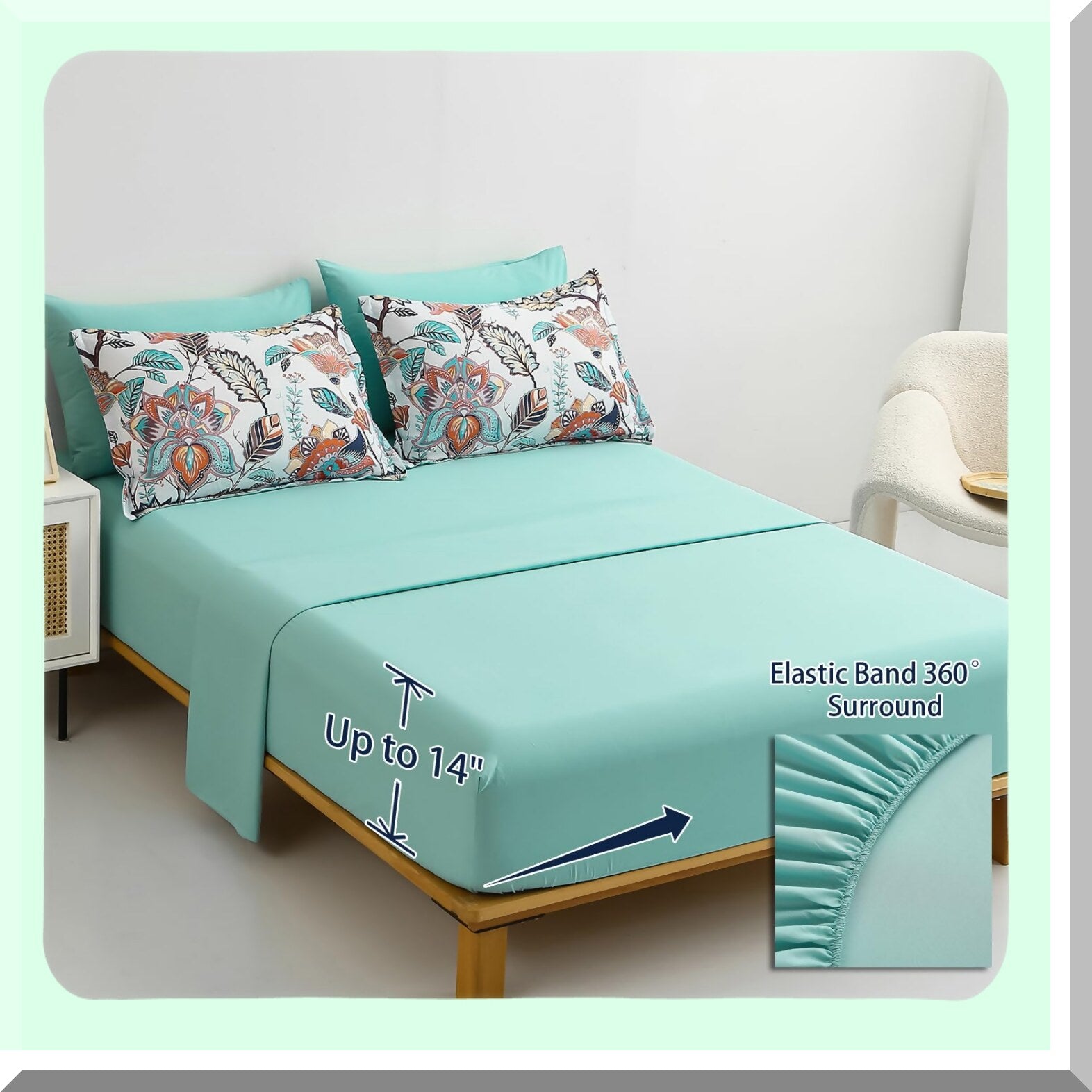 Botanical Bliss 7-Piece Floral Comforter Set - Green & Burnt Orange Bed in A Bag with Butterfly Design - Includes Comforter, Sheets, Pillowcases & Shams