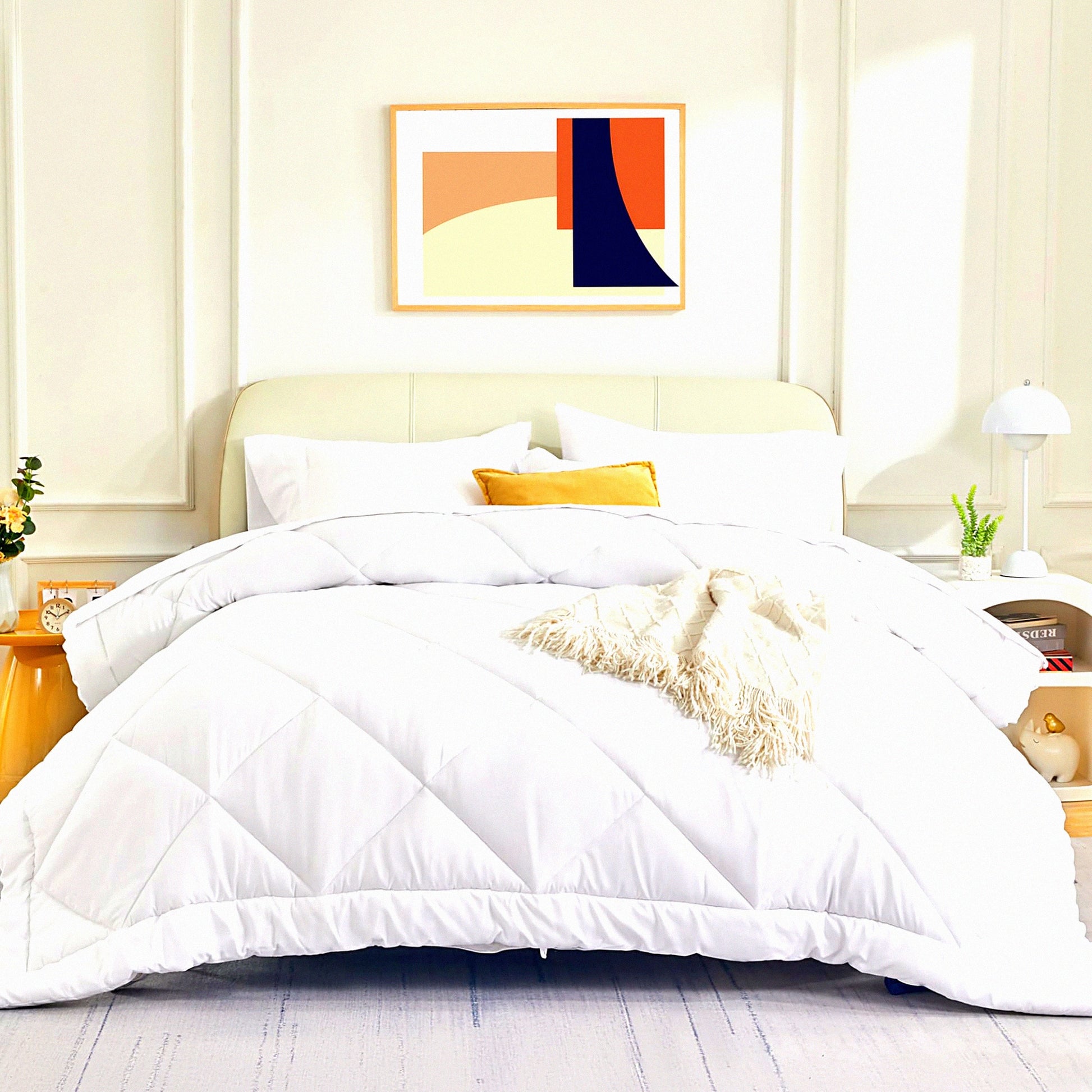 DiamondCool Reversible Comforter - All Season Size Cooling Bedding with Soft Breathable Down Alternative Fill. White, Diamond Quilting for Maximum Comfort.