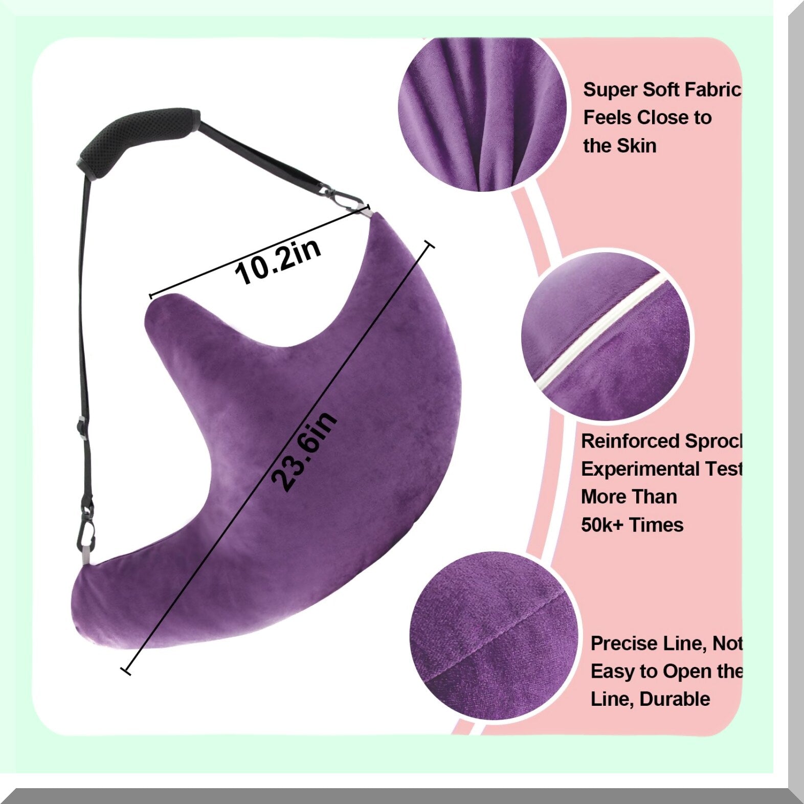 The innovative shoulder pillow is designed to help with recovering from rotator cuff tears and bicep injuries. It provides support and comfort to the shoulder area, making it easier for users to rest and heal. This design can improve the recovery process and potentially reduce pain and discomfort. The practical benefits include increased comfort, support for the injured area, and potentially faster healing times.