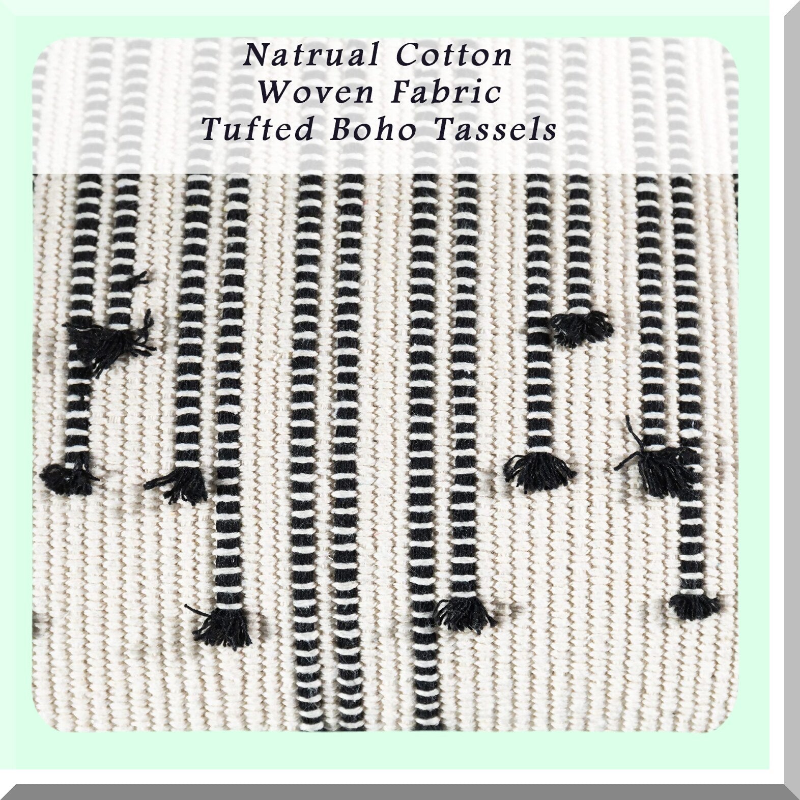 Boho Woven Lumbar Pillow Cover Set - Decorative Rectangle Throw Pillows - Black & White Pillowcase for Couch, Sofa, Bed, Car - 12x20 Inch