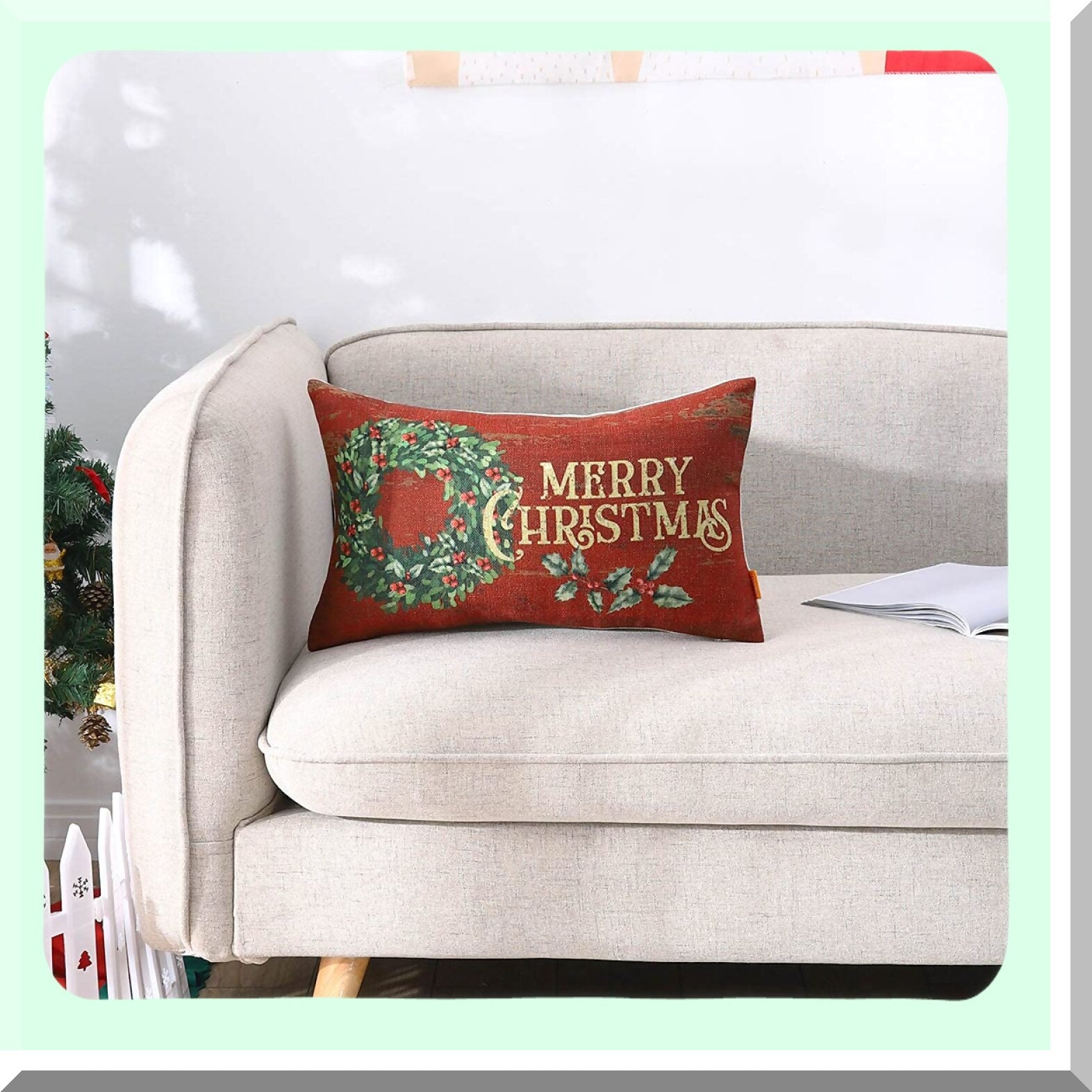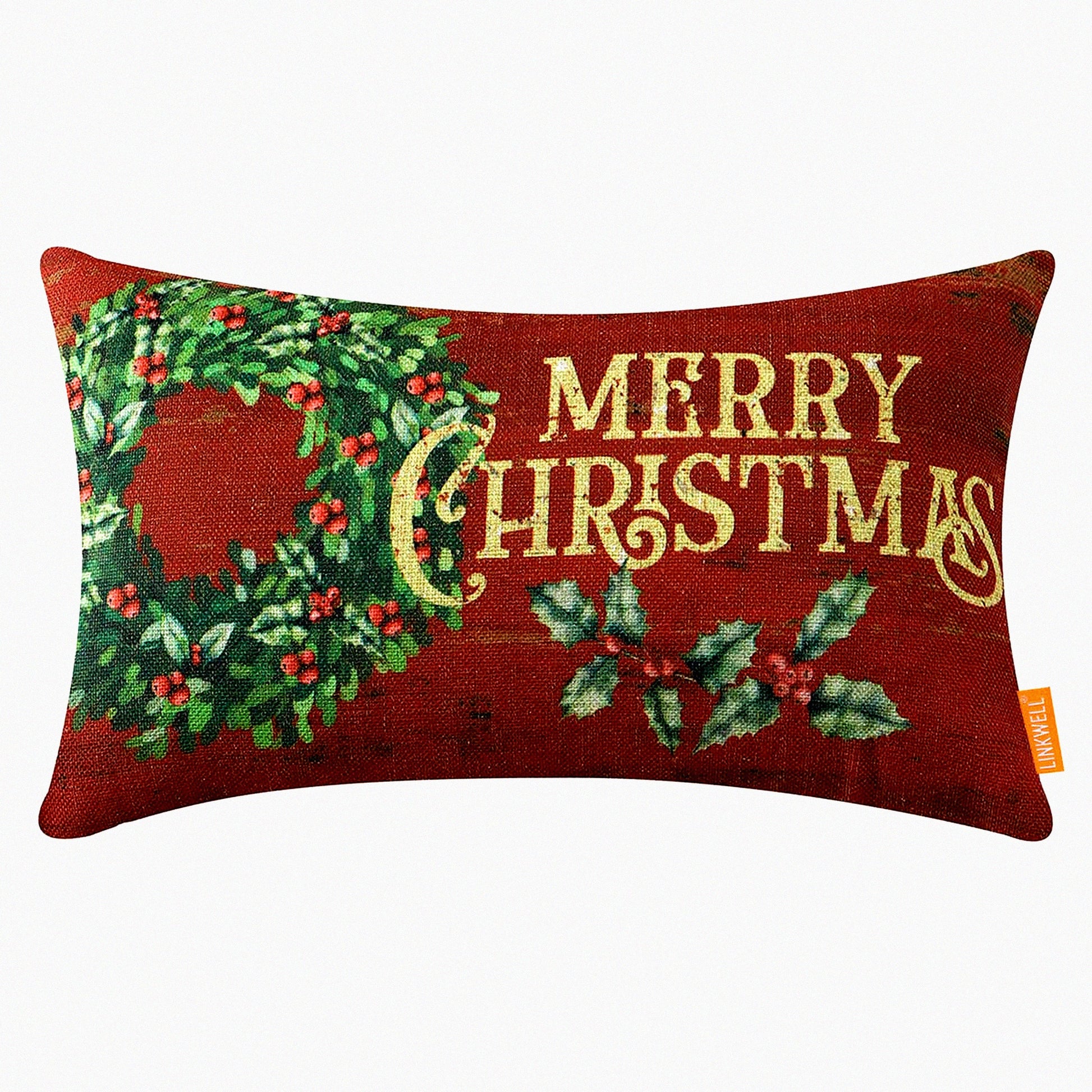 Wreath Decor Cushion Cover - Sofa Couch Pillowcase 12x20 Inch - Decorative Throw Pillow Case for Home Decor - CC1865 Collection
