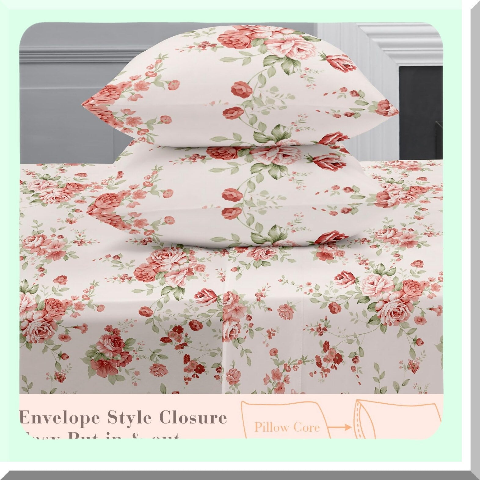 Floral Bliss Queen Sheet Set - Ultra Soft Microfiber Bed Sheets for Queen Size Bed with Deep Pocket - Fade and Shrink Resistant - 4PC Set