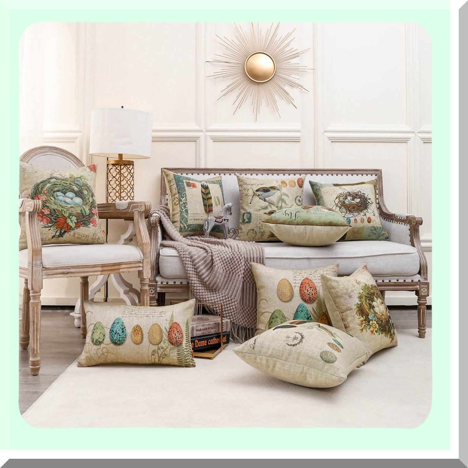 Birdsong Square Pillow Cover - 18x18 Inch Decorative Throw Case for Sofa & Bed, Egg Cushion Design, Home Decor Accent, CC1888