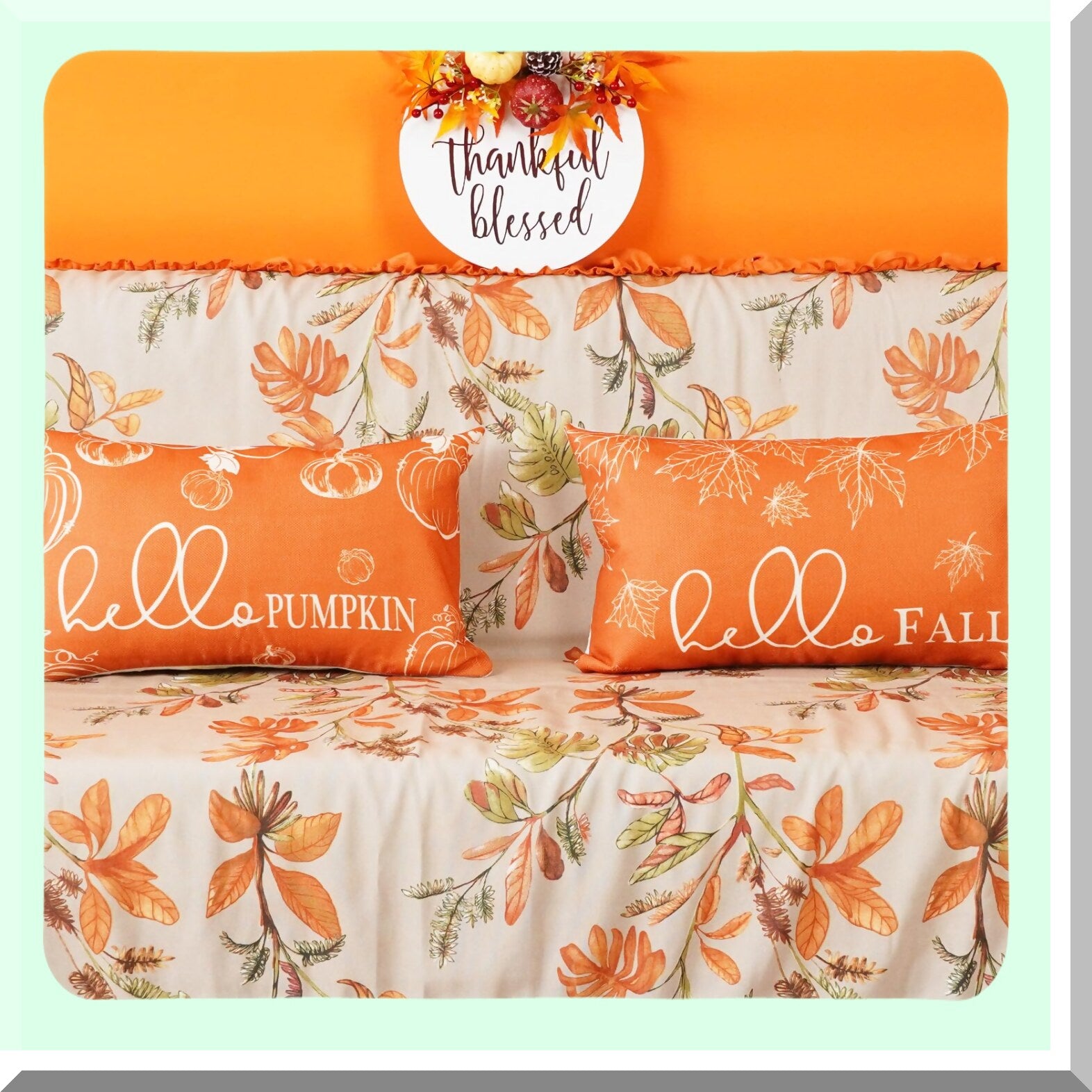 Autumn Harvest Decorative Pillow Covers - Set of 2 Farmhouse Pumpkin Maple Leaves Cushion Cover for Sofa Couch - Hello Fall Outdoor Patio Home Bed Décor