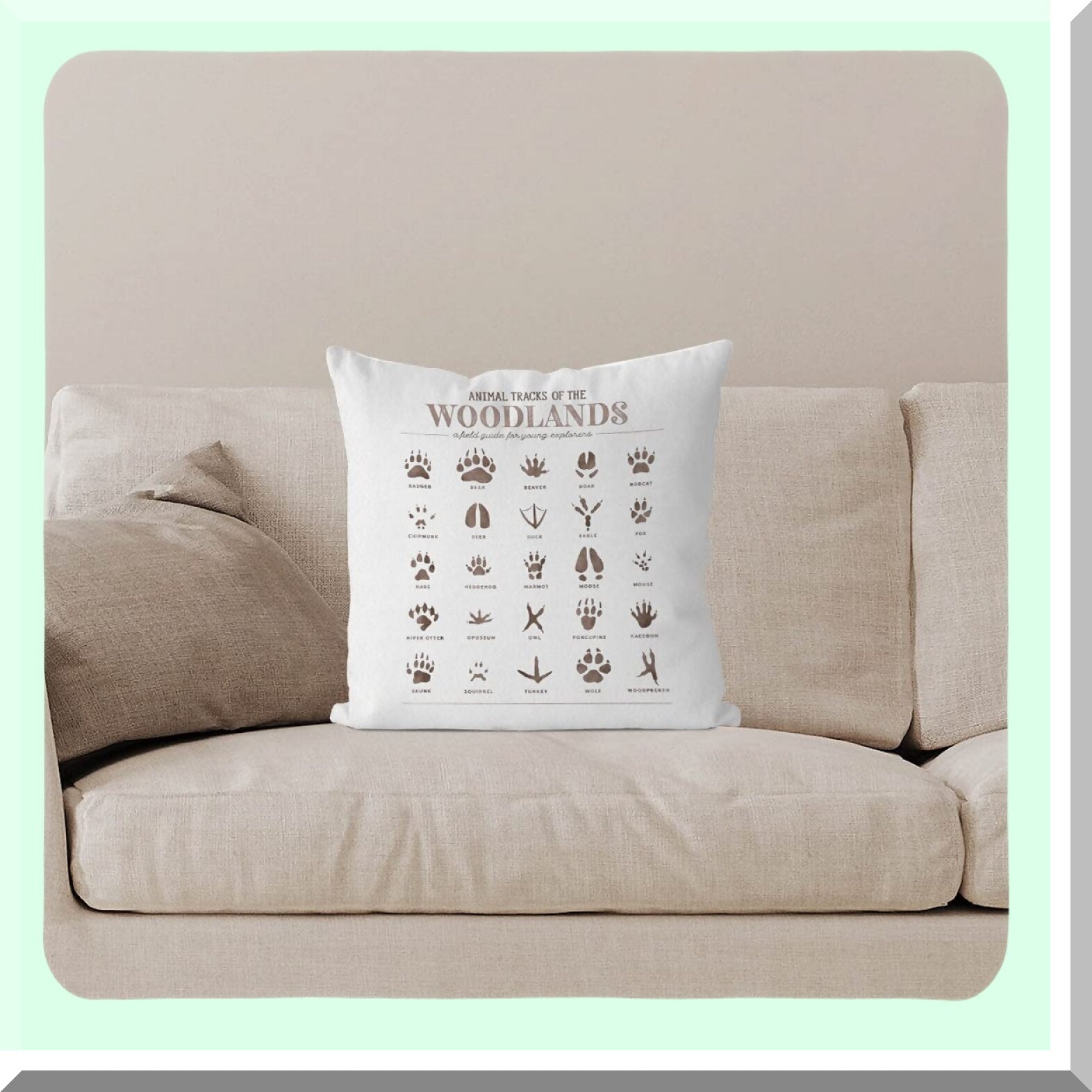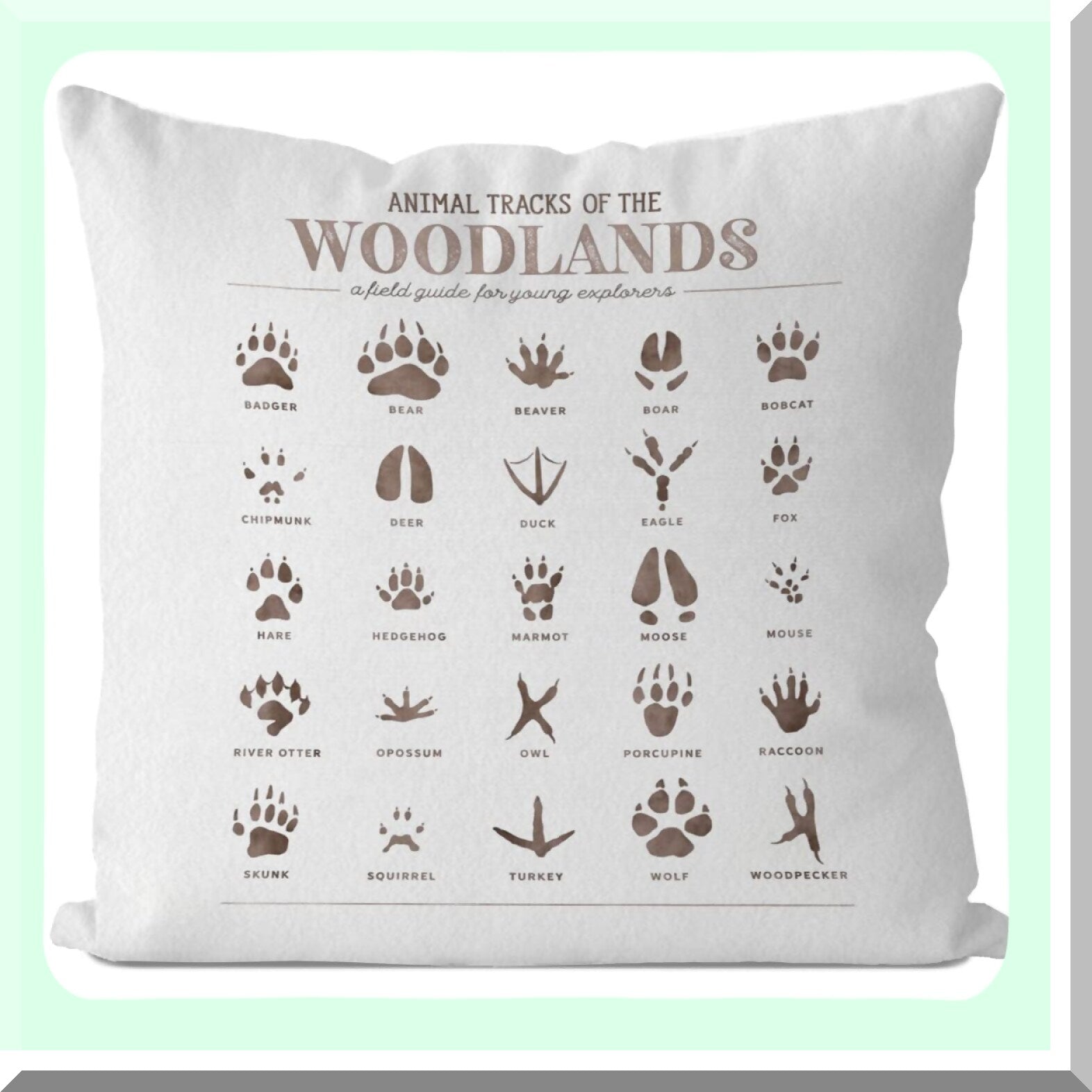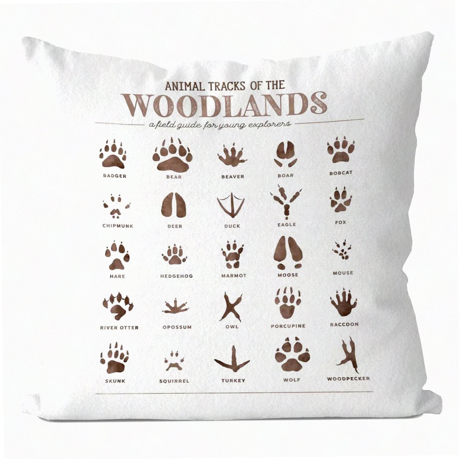 Forest Tracks Pillow Covers - Woodland Nursery Decor 18X18 - Animal Tracks Throw Pillowcase - Woodland Animal Decorative Pillow