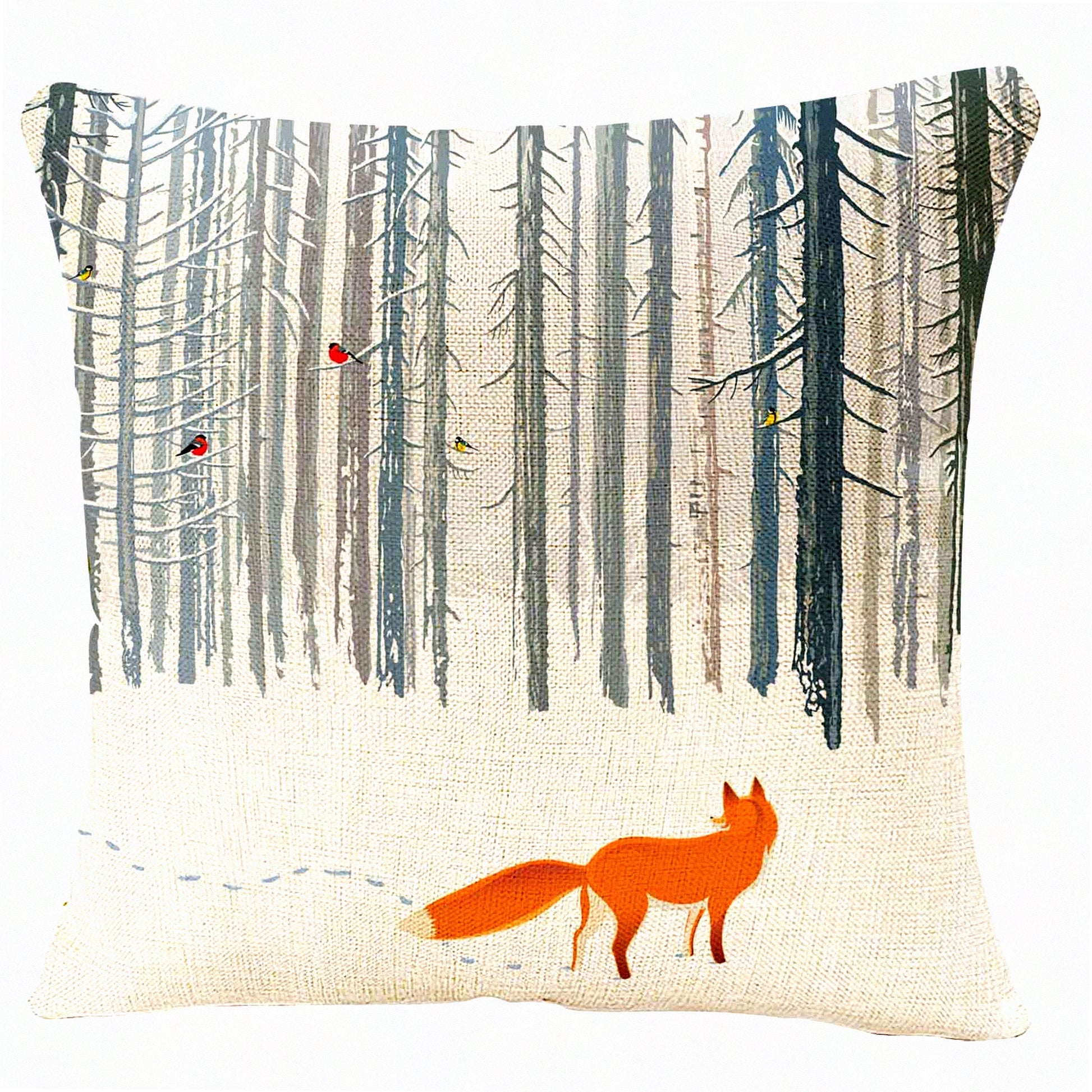 Winter Fox Forest Pillowcase - 18x18 Inches - Bird Cushion Cover - Home Decor Landscape Throw Pillow Cover