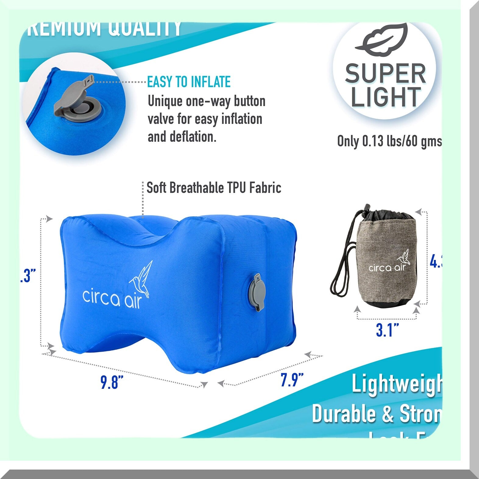 The inflatable knee pillow is the most compact and lightweight option available, folding down to 4x2 inches and weighing only 1 pound. This makes it highly portable and easy to carry around. Users can easily pack it in their bags or luggage when traveling. The compact size also makes it convenient to store when not in use. The lightweight design ensures that users can use it without feeling burdened or restricted. Overall, the practical benefits of this knee pillow lie in its portability, ease of storage, and comfortable usage.