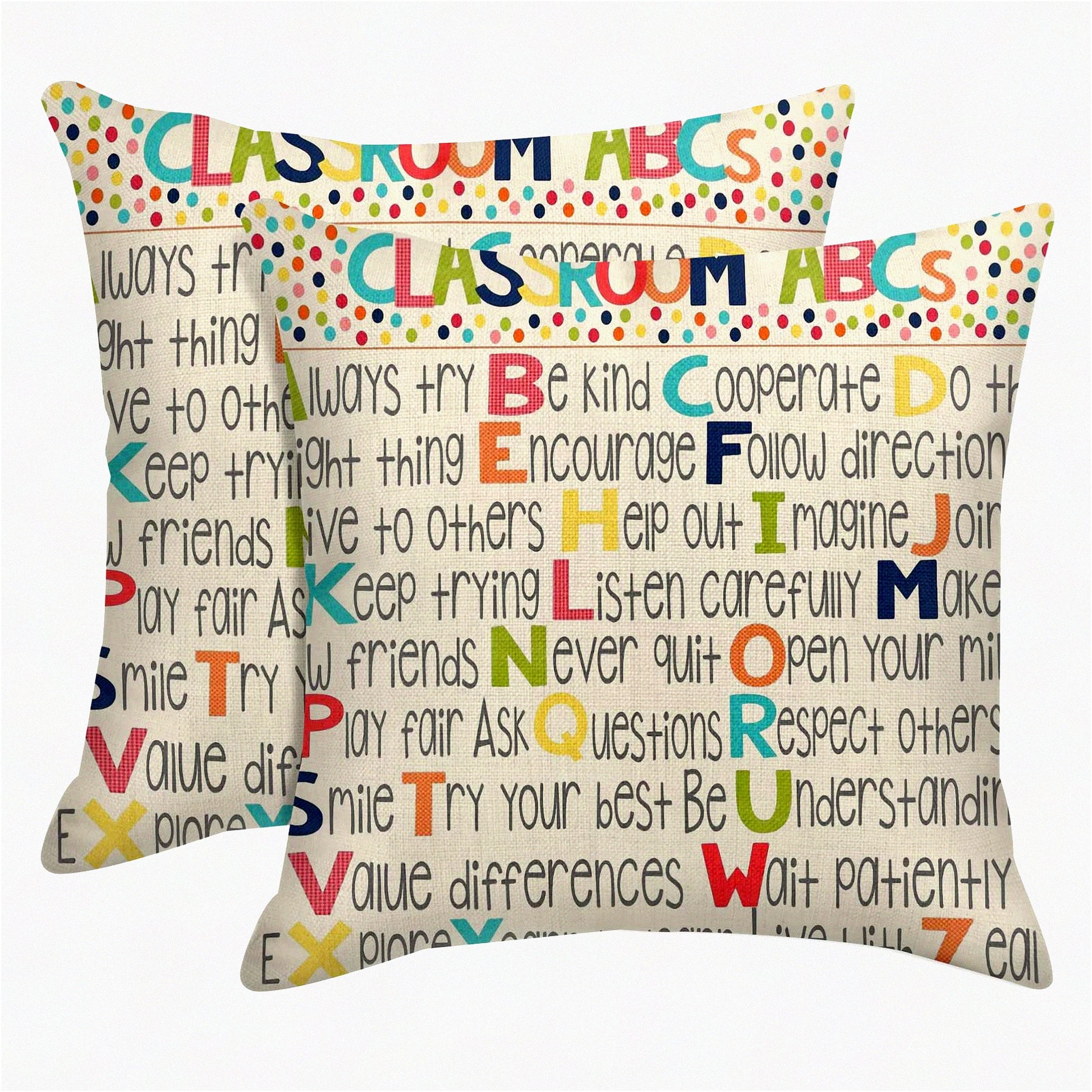 ABCs Linen Throw Pillow Covers - Set of 2, Educational Decorative Cases for Home Decor, Square 20 x 20 Inches Pillowcases