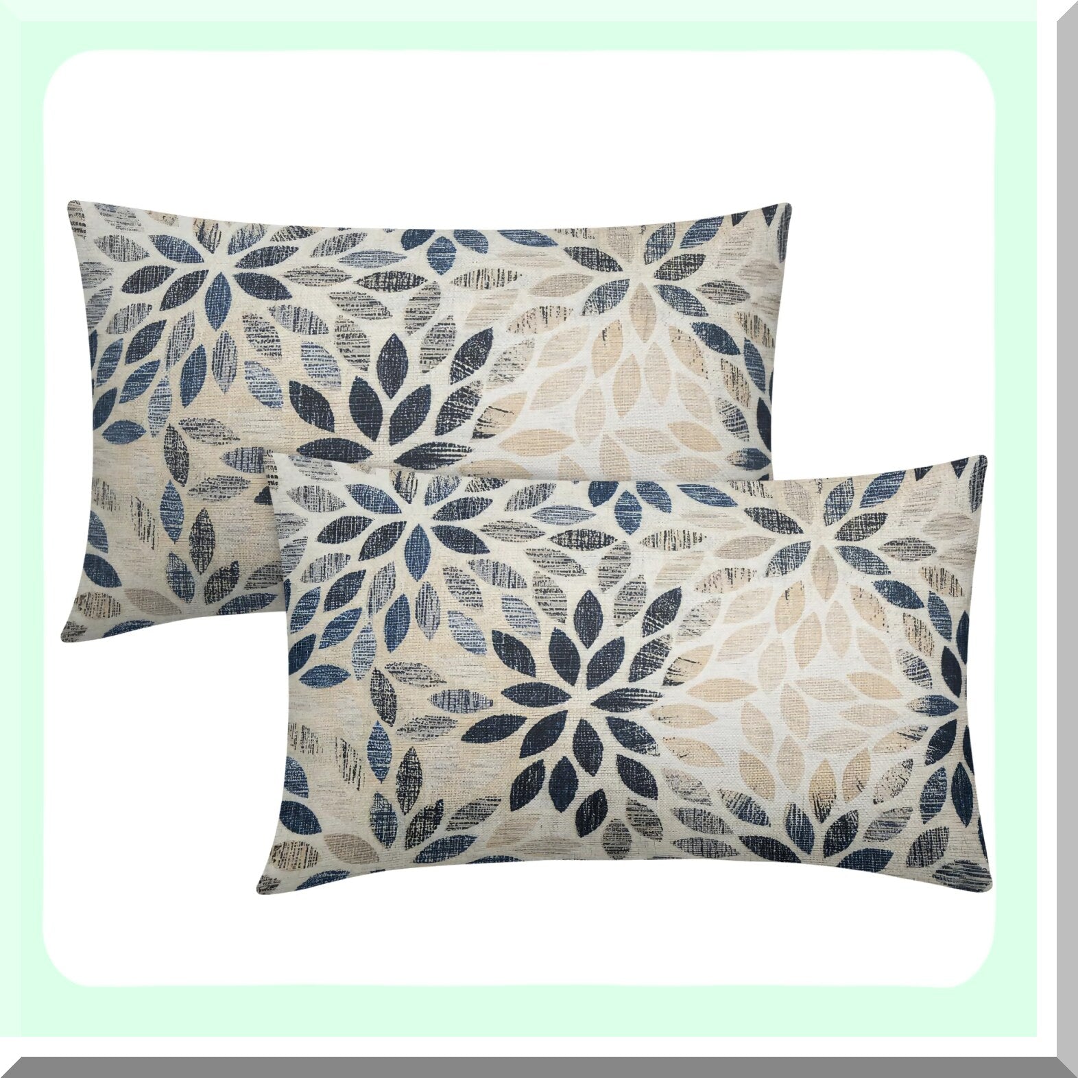 Rustic Geometric Dahlia Lumbar Pillow Covers - Set of 2 | Navy Blue Floral Cushion Cases for Sofa, Bedroom & Outdoor Decor | Beige Tan Gray Farmhouse Home Accent 12x20"