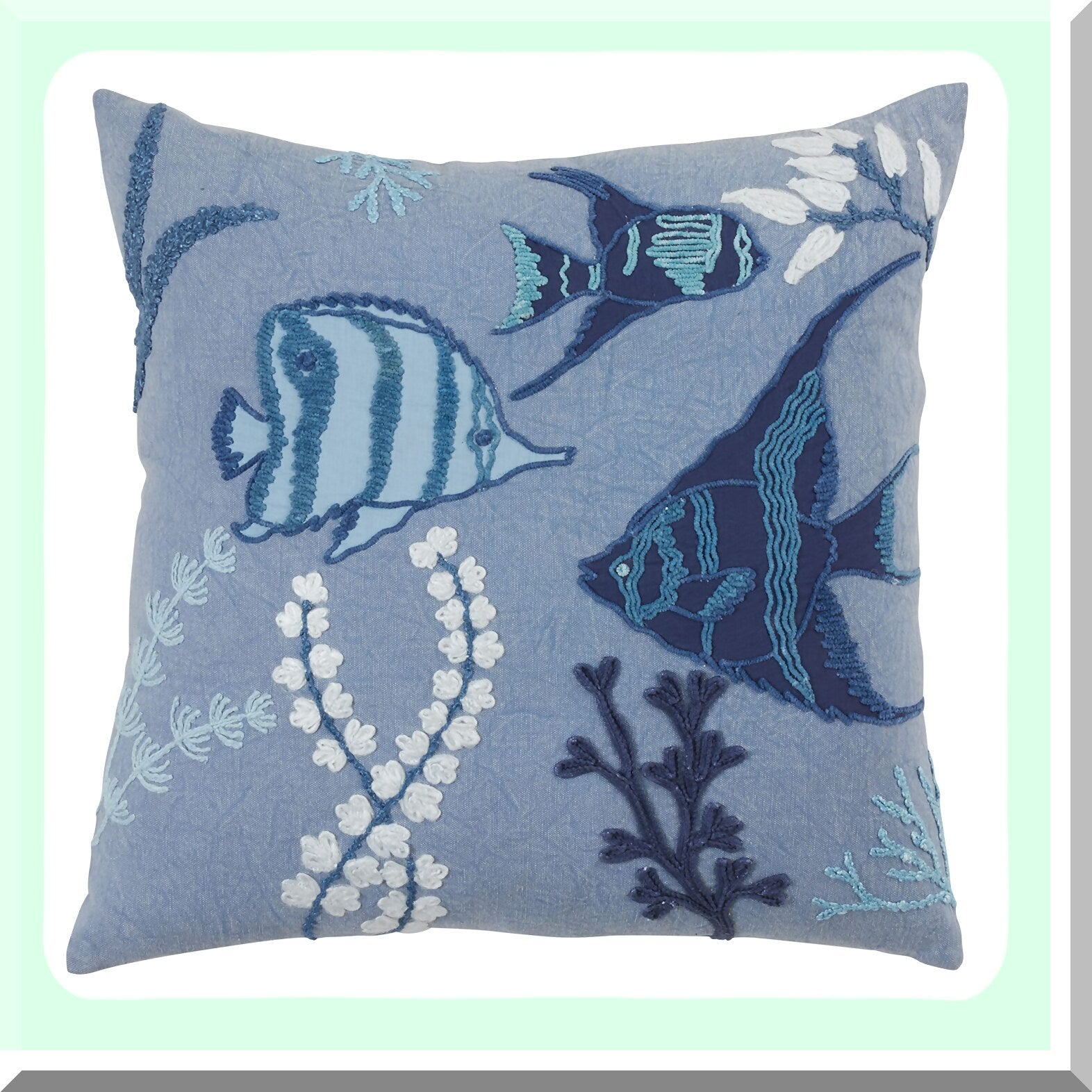 Ocean Breeze Stonewashed Fish Pillow Cover, 20", Blue - Coastal Decor Accent for Home, Beach House, or Nautical Themed Room - Soft and Durable Cotton Fabric