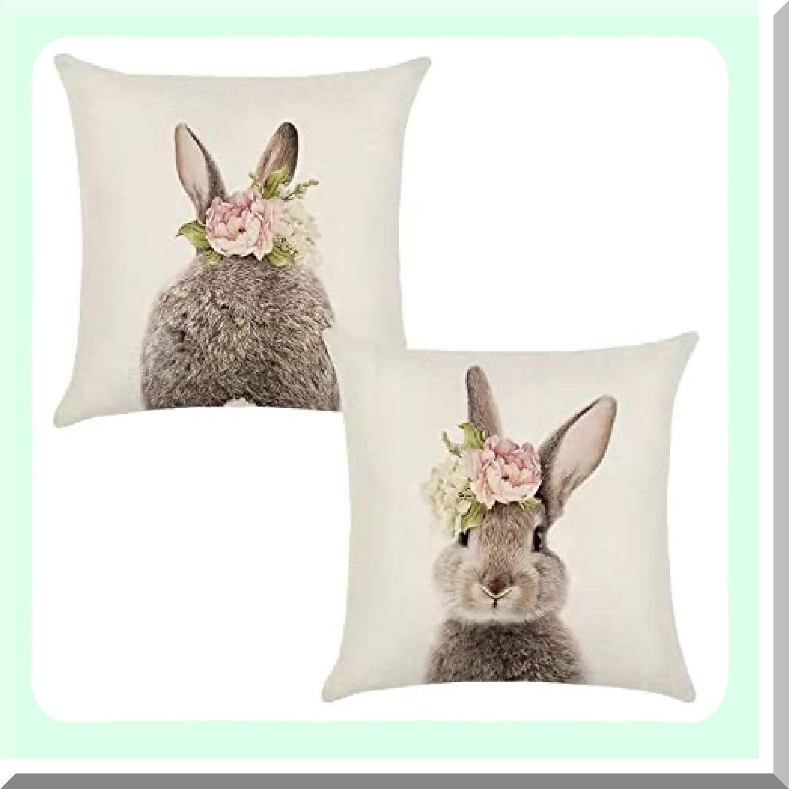 Floral Bunny Cushion Cover Set - 18x18 Cute Rabbit Pillows - Linen Throw Pillow Case for Home Sofa Bed Decor - Bunny Throw Pillow Decorations