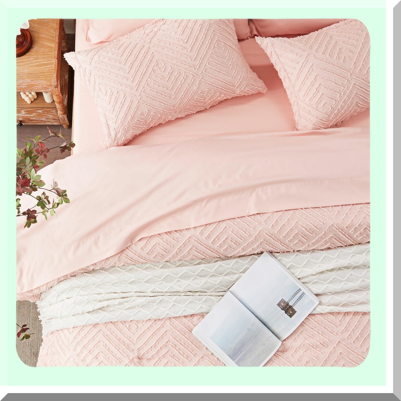 Pink Boho Bliss Bedding Bundle - Twin Comforter Set with Sheets & Pillowcases - 5 Piece All Season Bed in a Bag - Tufted Design for Ultimate Comfort