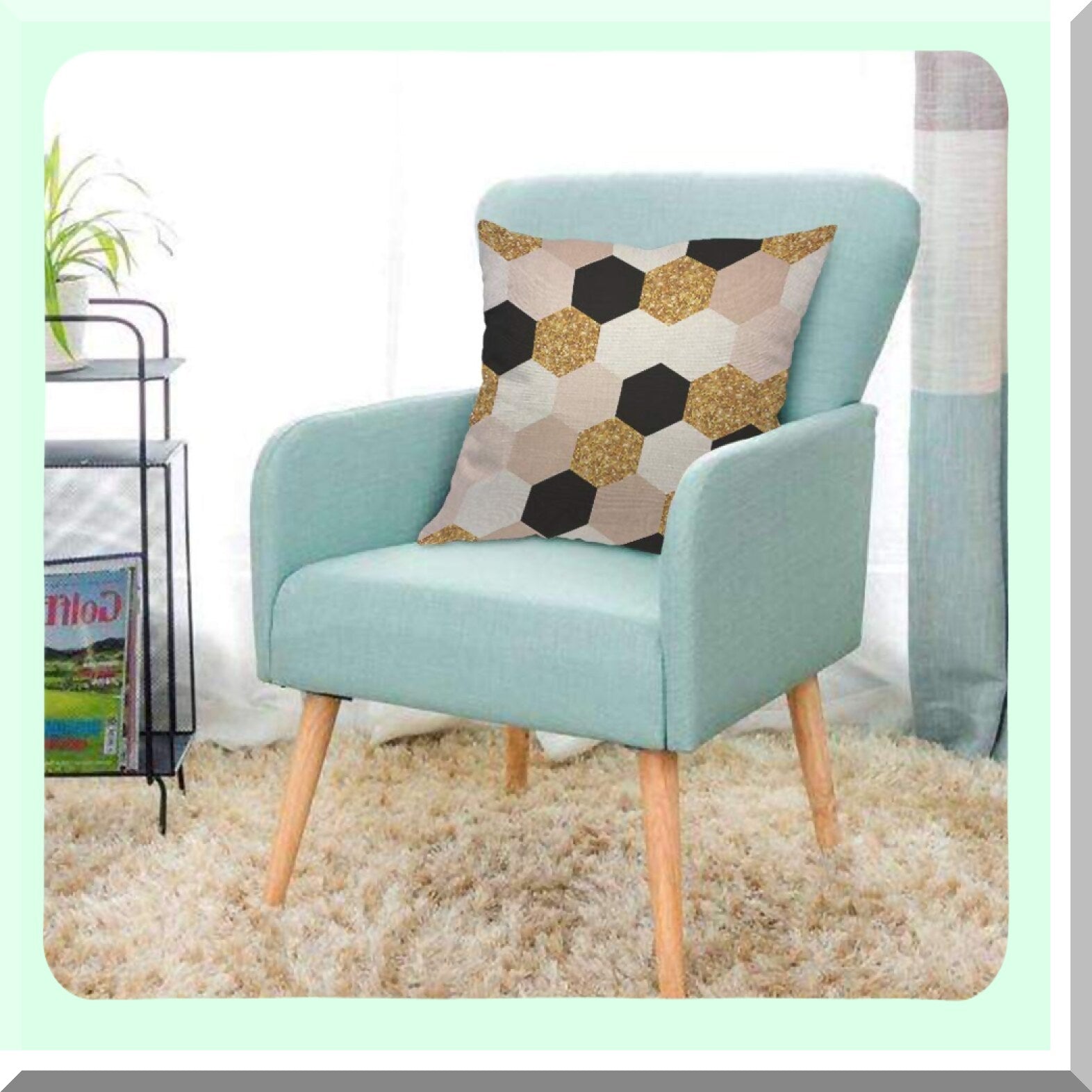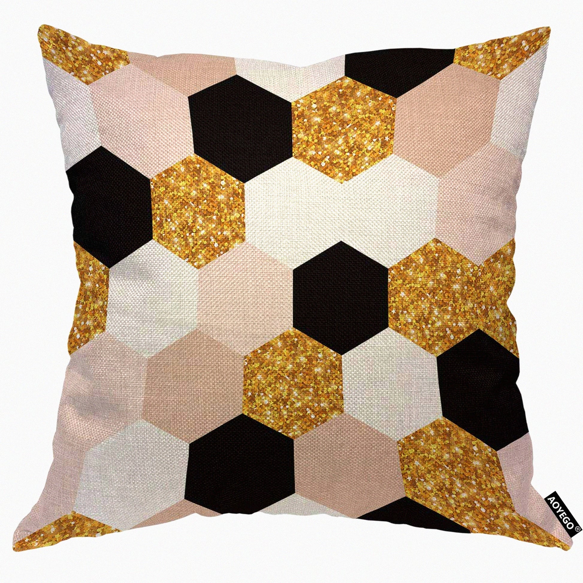 HexaGlam Gold Black White Geometric Pillow Cover - Modern Chic Elegant Grid Design with F Glitter Detail - 18x18 Inch Decorative Cushion for Home Couch or Bed - Ideal for Men, Women, Boys, and Girls