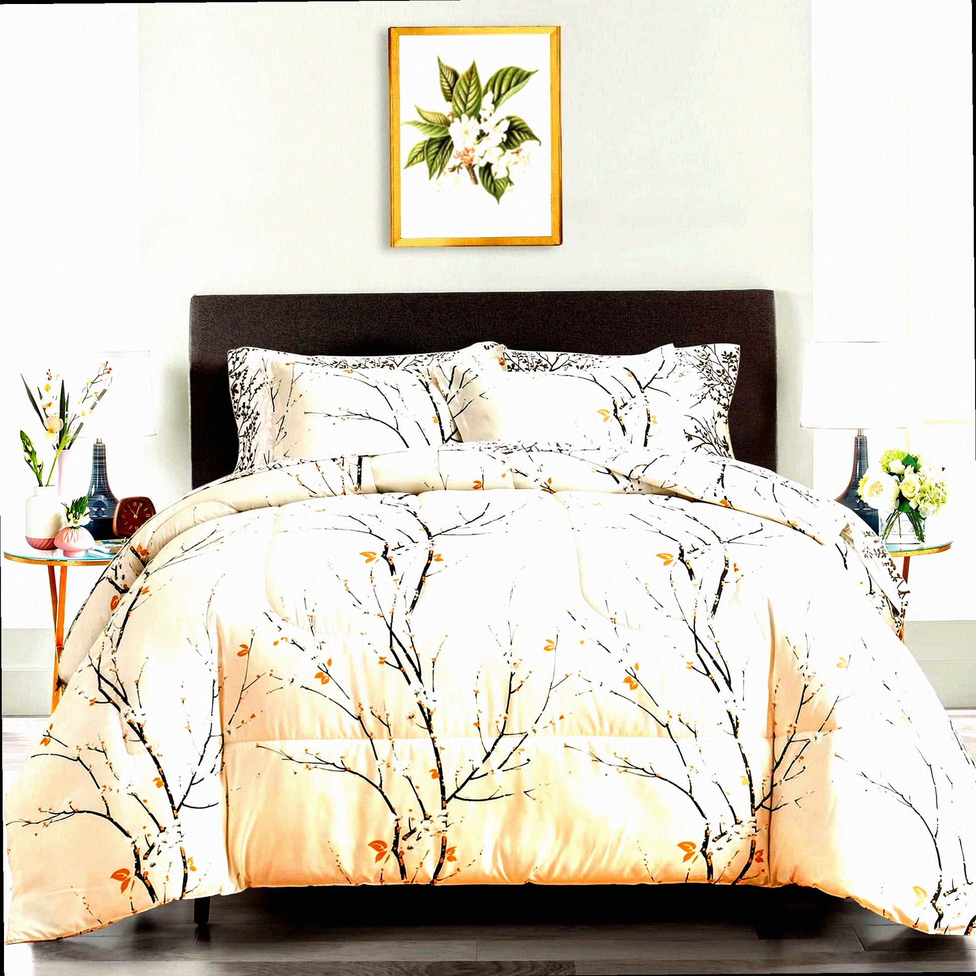 Branch Style All Season Soft Microfiber Reversible Bedding Set - Queen Size 7 Piece Comforter Set with Pillow Shams, Sheets, and Pillowcases - Cream White Bed in a Bag