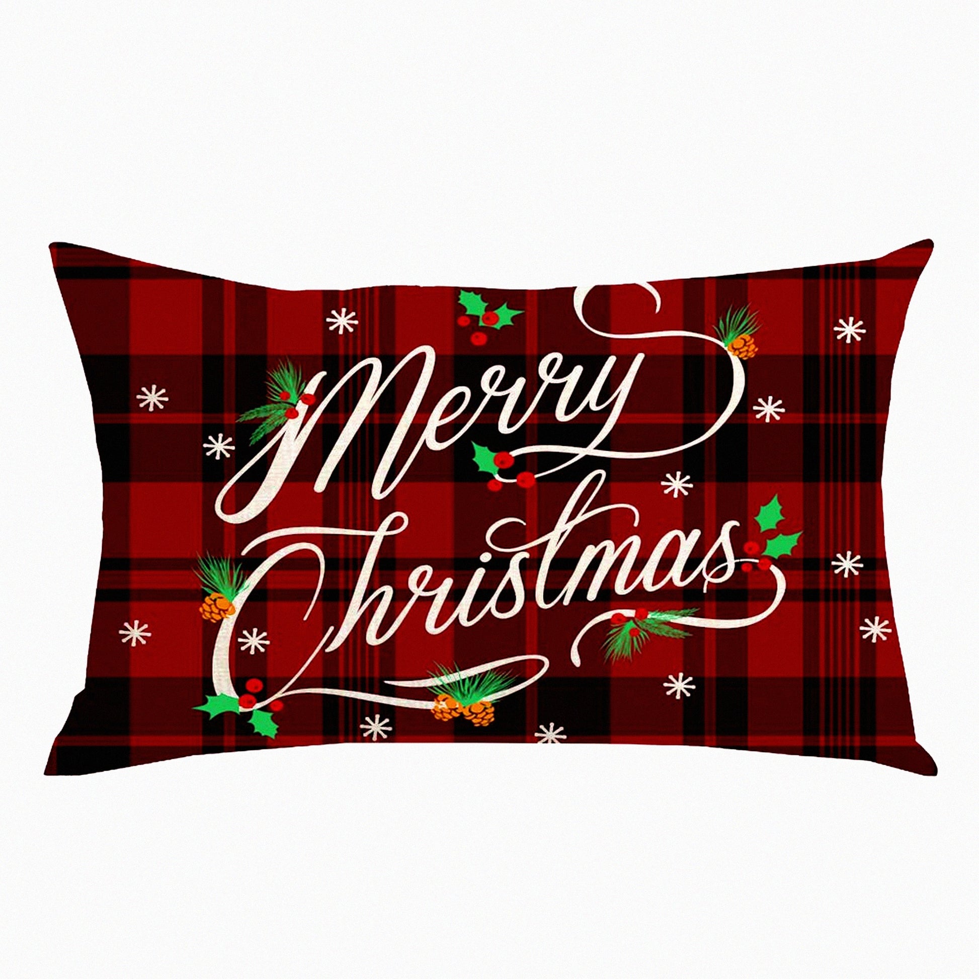 This lumbar pillowcase, sized at 12 x 20 inches (30 x 50 cm), offers practical benefits for home decoration. Its cotton linen material provides a comfortable and durable option for use on sofas, chairs, and beds. The red and black plaid background with snowflake design adds a festive touch, making it ideal for winter and holiday decor. The pillow cover enhances the aesthetic appeal of any room while offering support and comfort.