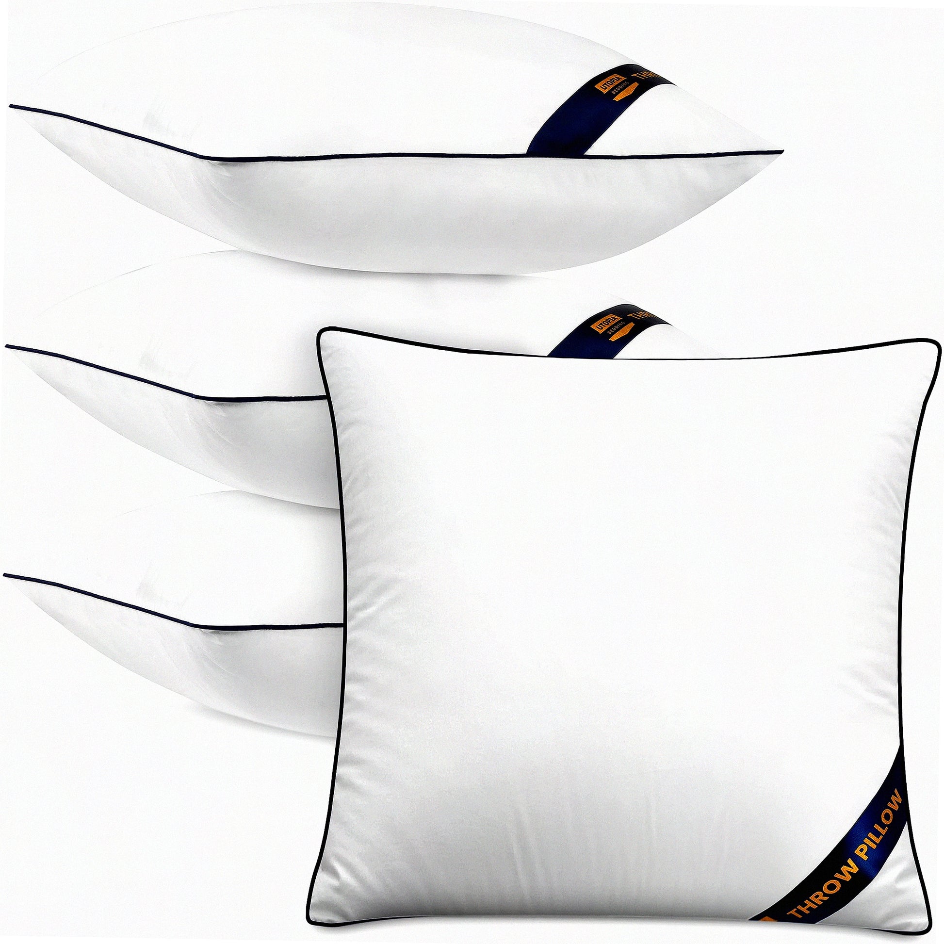White Decorative Pillow Insert Pack - Set of 4, 22x22 Inches Sofa Cushion Stuffers - Indoor Bed Couch Sham Pillows