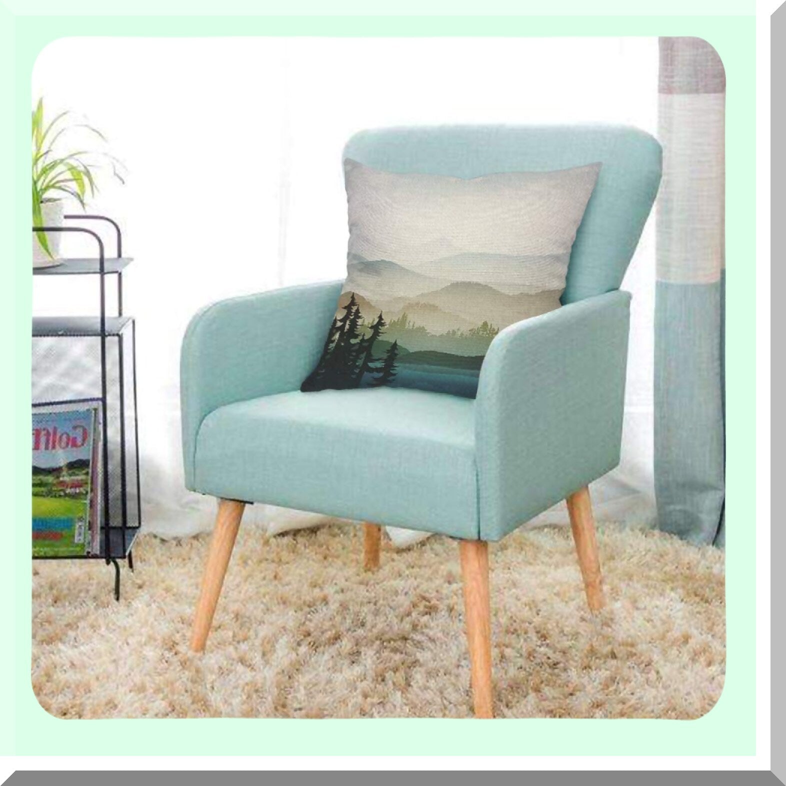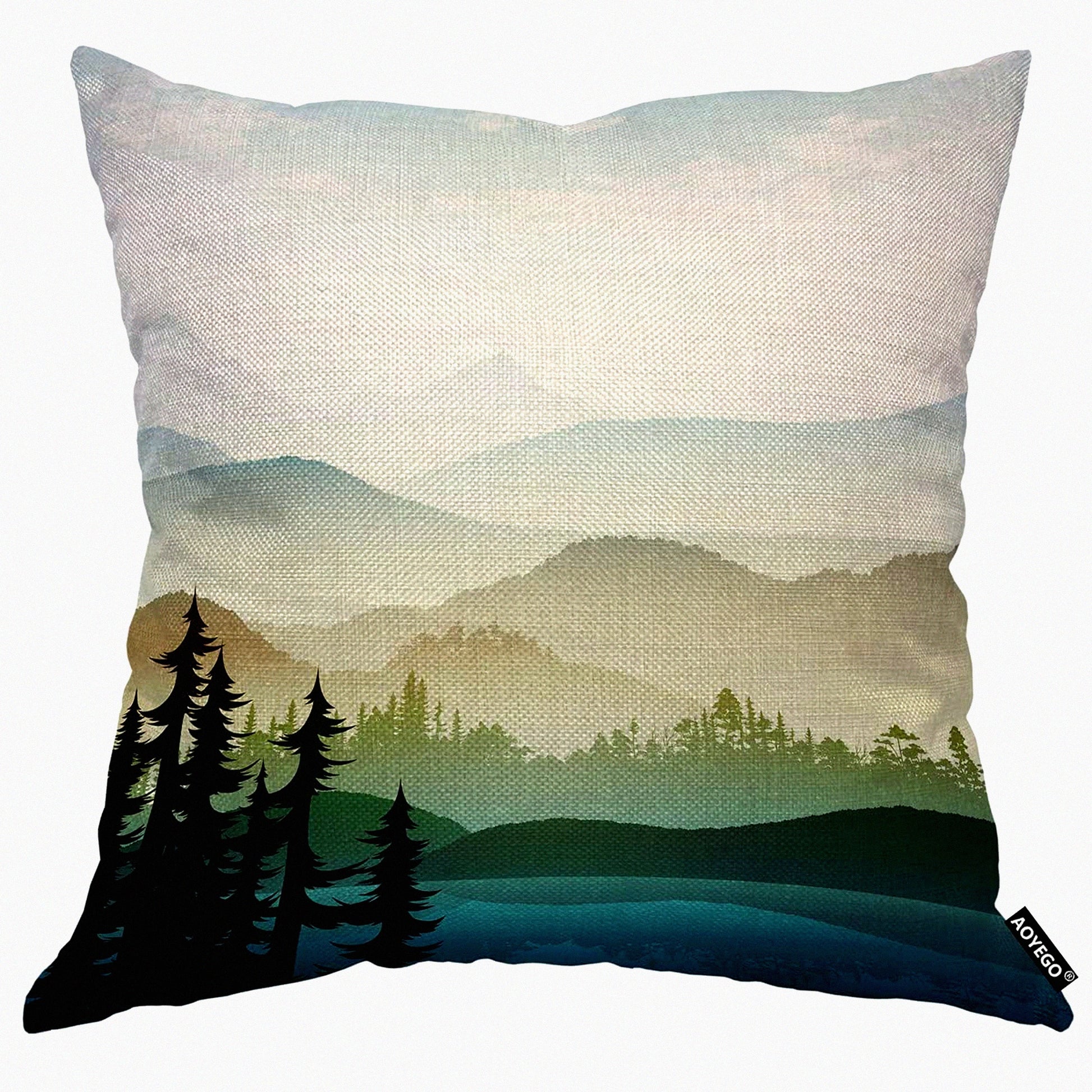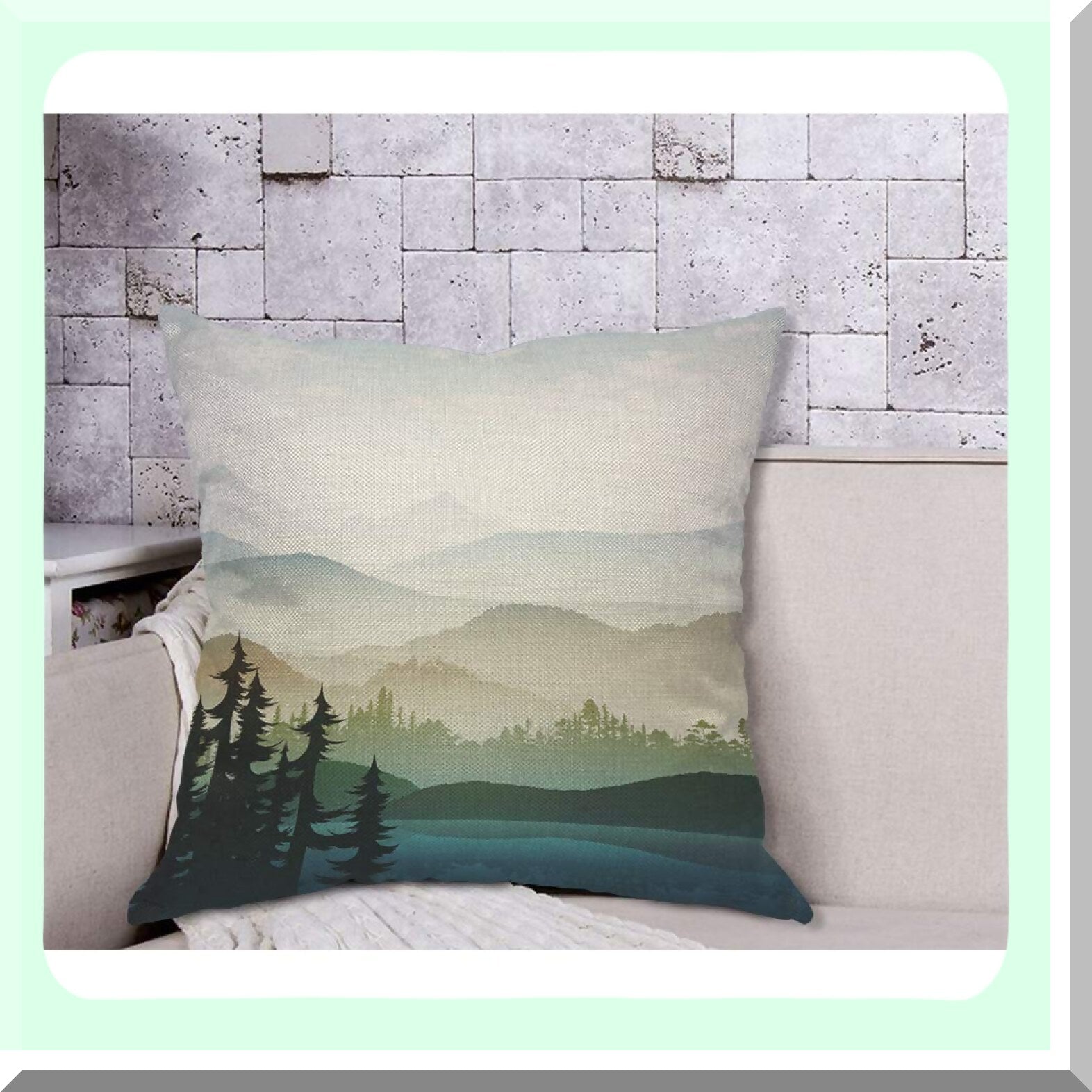 Mountain Forest Lake Summer Green Plant Fog River Park Decorative Throw Pillow Cover - 18x18 Inch Cotton Linen Cushion for Home Couch Bed