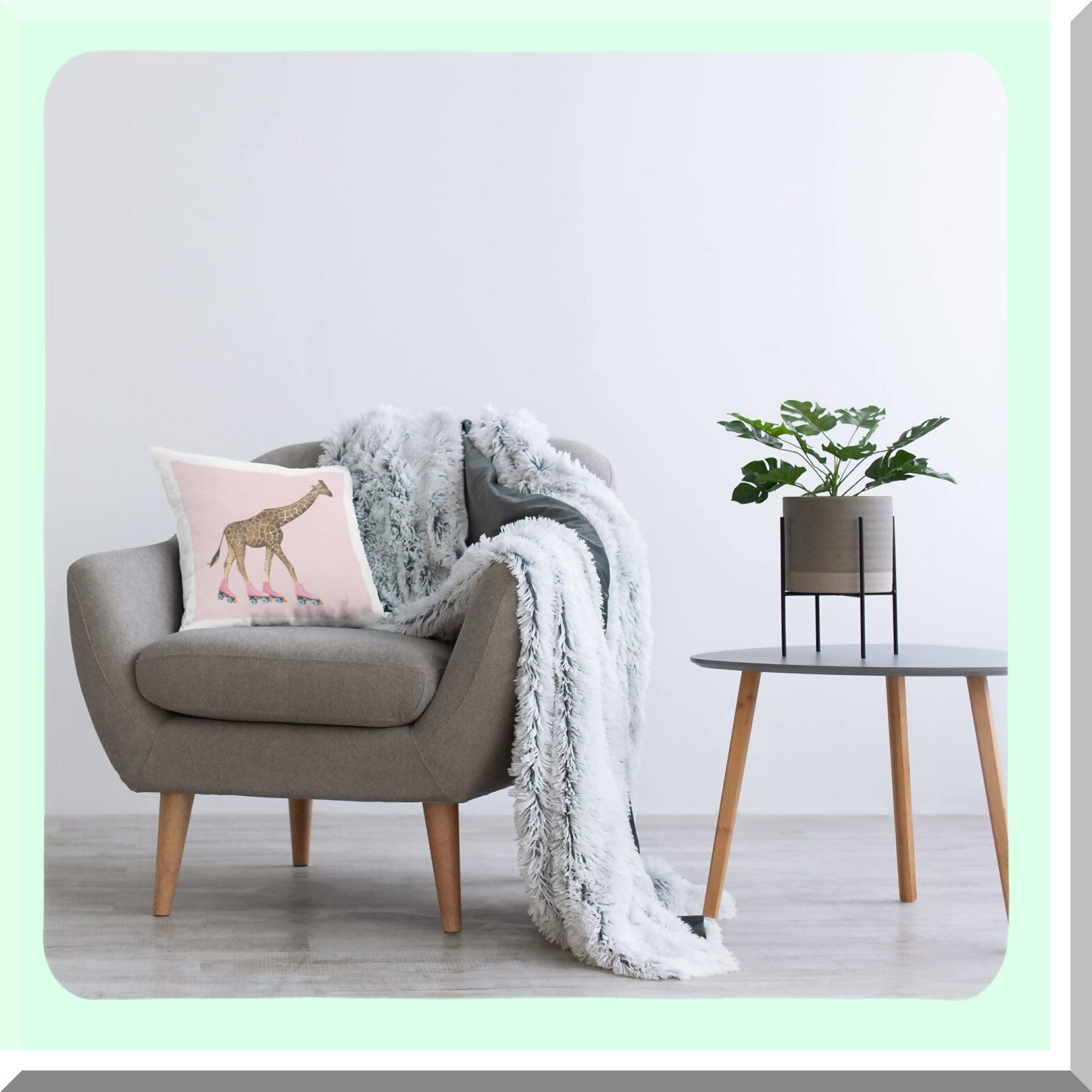 Roller Skating Giraffe Pillow - Funny Animal Design by Grace Popp - 18 x 18 inches - Pink Decorative Cushion Cover - Whimsical Home Decor