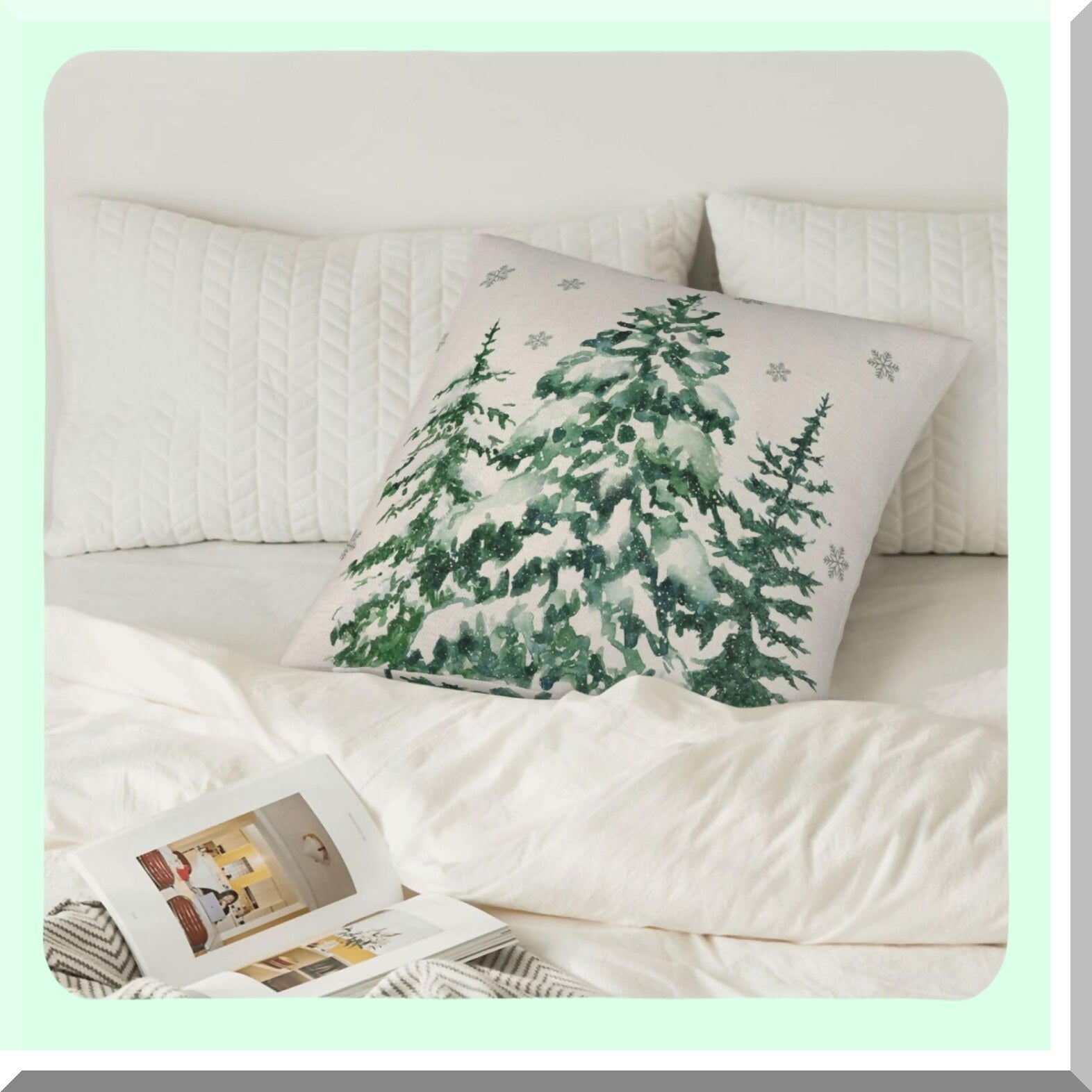Forest Green Winter Linen Pillow Covers - Set of 2 18X18 Inch Decorative Cushion Cases for Sofa Couch Living Room - Trees Throw Pillows