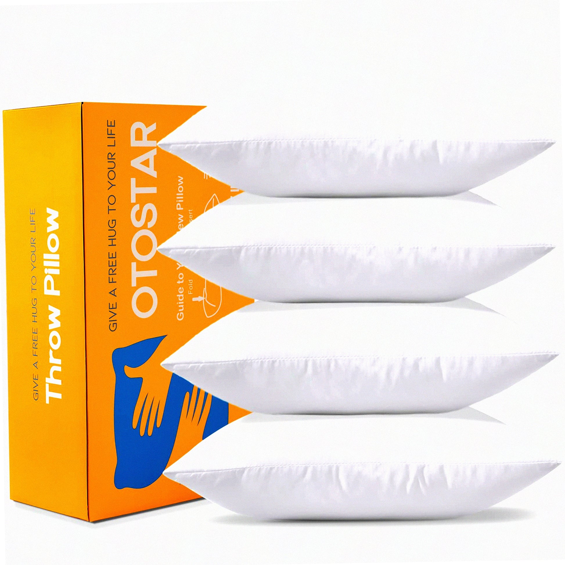 FluffPlump 18x18 Square Pillow Inserts - Pack of 4 Soft Cushion Pads for White Decorative Pillows - Inner Stuffer for Fluffy Comfort