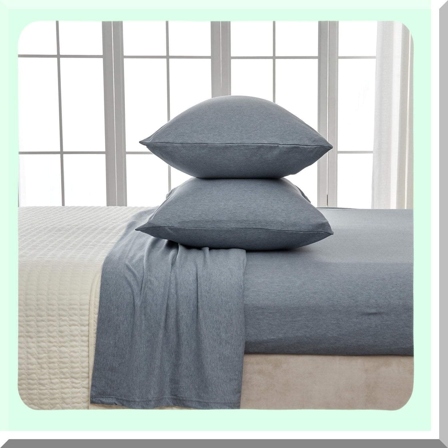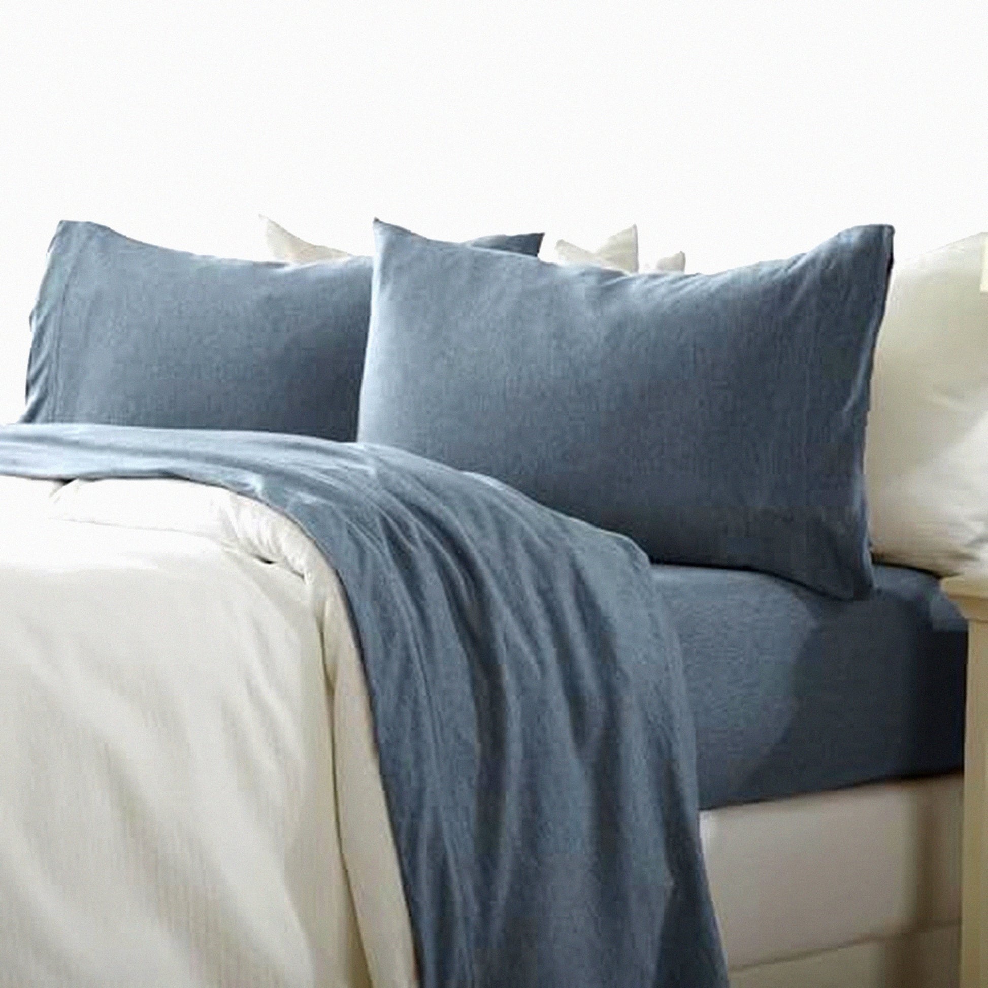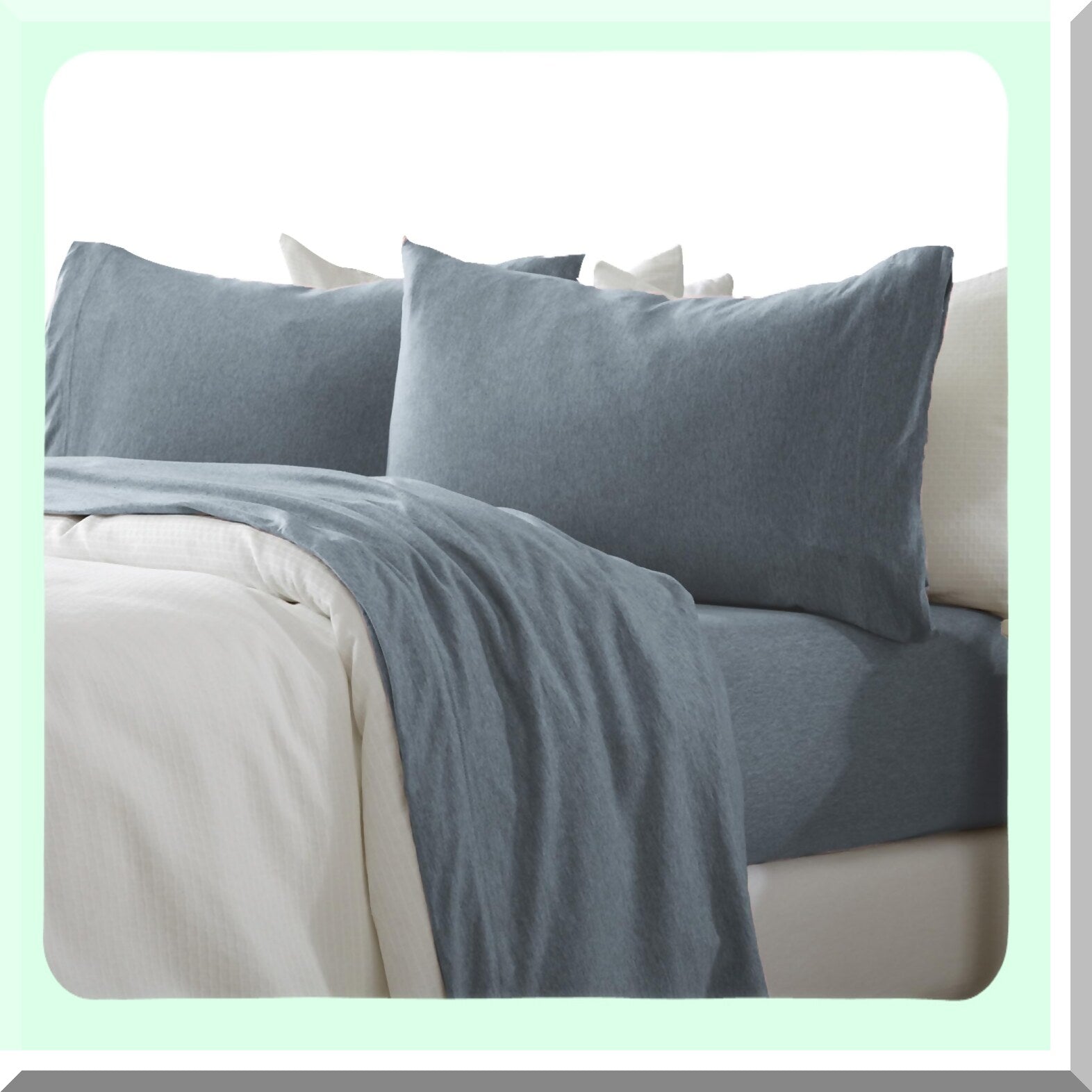 UltraSoft Heathered Denim Blue Jersey Knit Queen Sheet Set - Breathable Cotton Blend Bedding with Pillowcases - All Season T-Shirt Jersey Bed Sheets