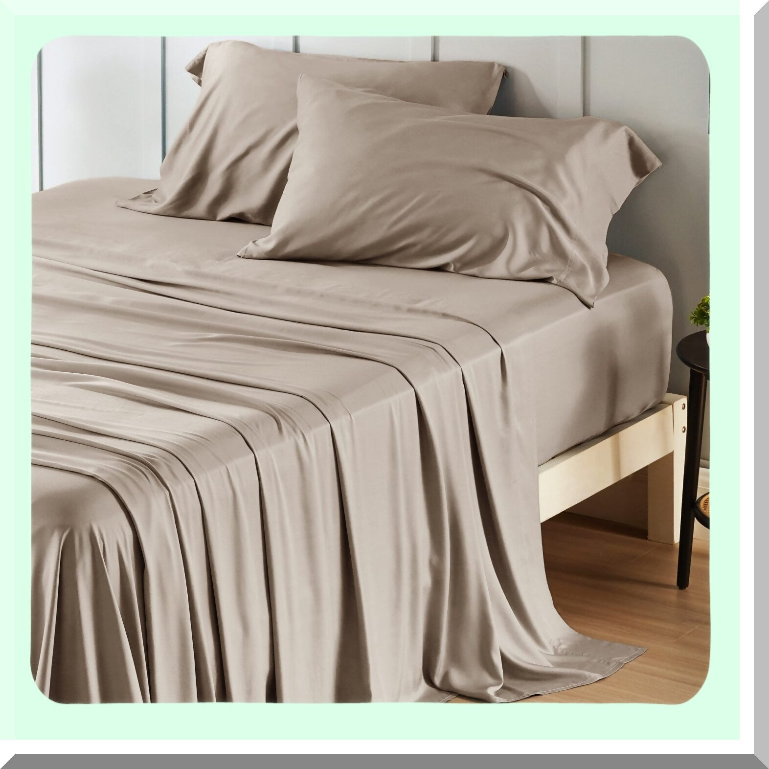 Bamboo Bliss Cooling Queen Sheet Set - Silky Soft Breathable Bedding with Deep Pockets - Hotel Luxury Simply Taupe Pillowcases - Queen Size Up to 16"