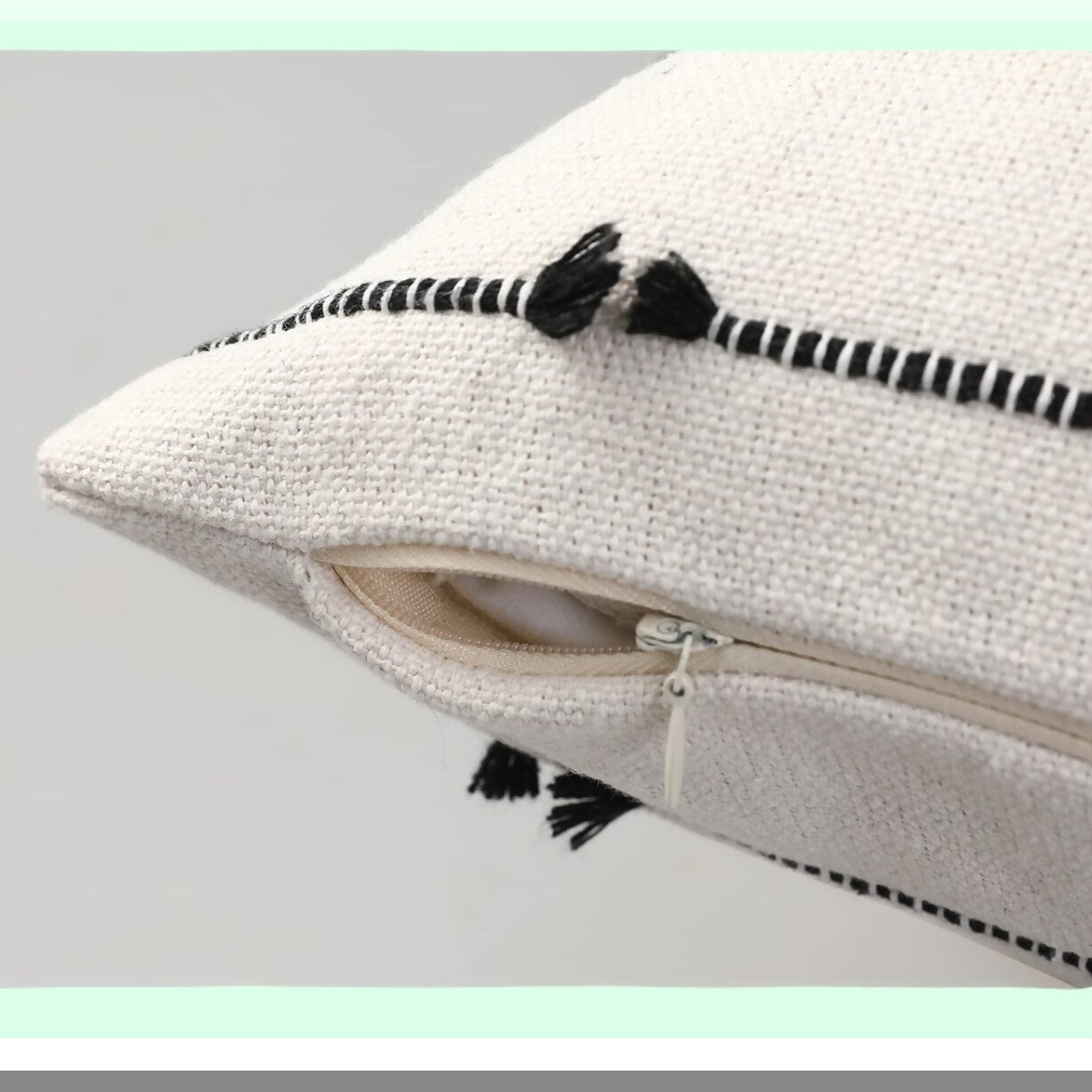 Boho Fringe Farmhouse Pillow Covers - Set of 2 26x26 Black Off White Neutral Couch Cushion Cases - Modern Accent Decor for Living Room Sofa Bed