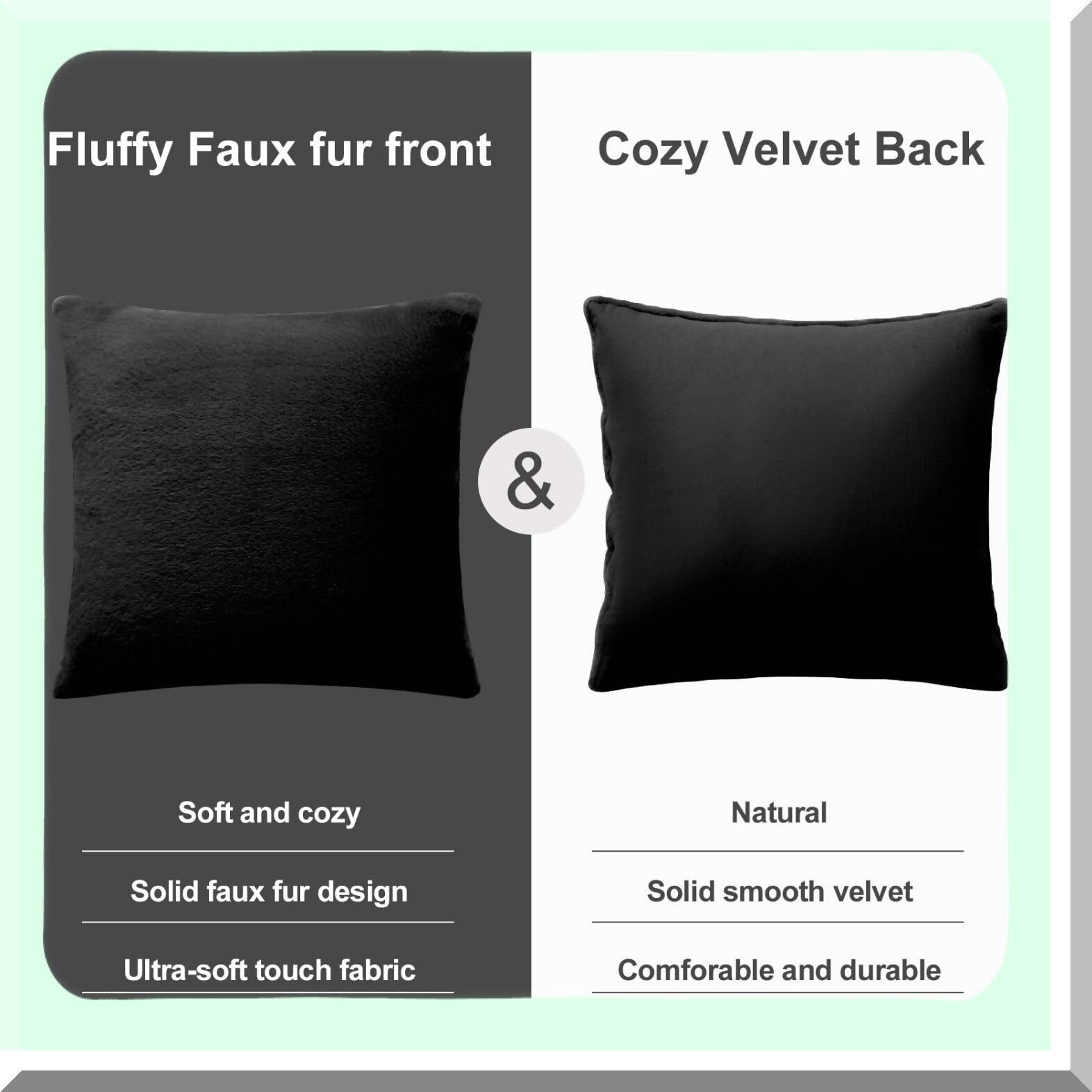 Luxury Plush Black Pillow Covers - Set of 2 18x18 Soft Fluffy Cozy Decorative Sofa Couch Living Room Pillows