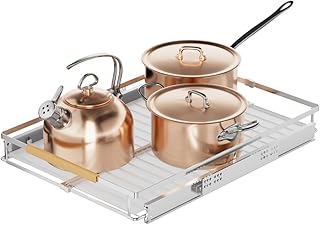 The Slideep Expandable Pull Out Cabinet Organizer is a durable, heavy-duty solution designed to maximize storage space in your kitchen. Crafted from stainless steel, it features a slide-out design that allows easy access to items stored in deep cabinets. The organizer extends smoothly, providing a convenient way to organize pantry essentials, cookware, or cleaning supplies. Its expandable feature adjusts to fit various cabinet widths, making it versatile for different storage needs. The sturdy construction ensures stability and long-lasting performance, while the sleek stainless steel finish adds a modern touch to your kitchen decor. With a depth of 22 inches, it offers ample space for larger items and helps keep your cabinets tidy and organized. Easy to install and maintain, this pull-out shelf enhances functionality and accessibility in your kitchen storage solutions.