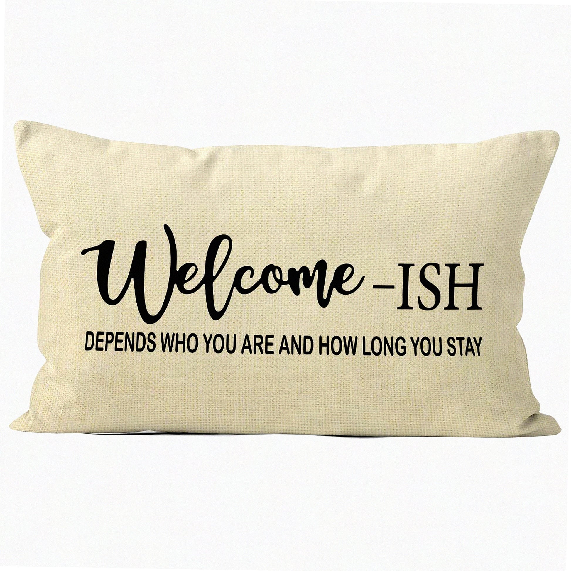 Rustic Welcome Quotes Linen Pillow Cover - Farmhouse Decor 18x18 - Funny Housewarming Gift for Home Porch Sofa - Welcome-ish Throw Pillow Case