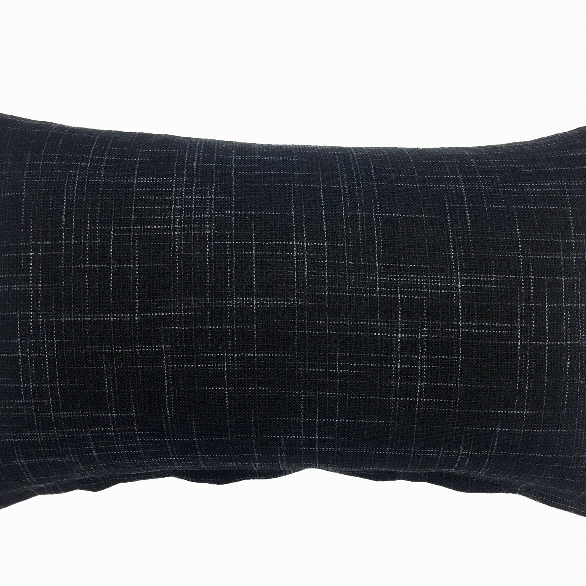 Black Cotton Linen Lumbar Pillowcase - 12x20 Inch Decorative Throw Pillow Cover for Couch Sofa Bed - Solid Color Oblong Rectangle Cushion Case
